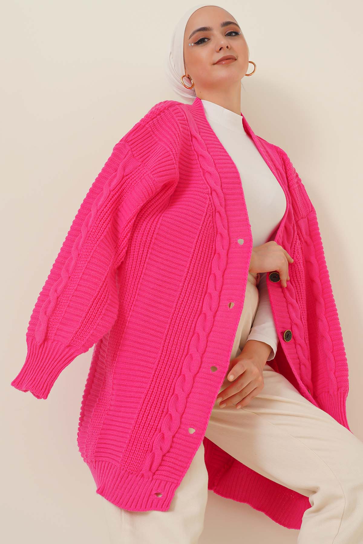 Yeni sezon model hırkamız sade ve şık görünüme sahiptir. Hırkamız örgü şeklindedir. Önü düğmelidir. Bu serin havalarda içinizi ısıtıcaktır. Farklı renk seçenekleri mevcuttur.