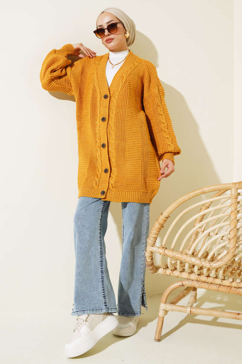 Yeni sezon model hırkamız sade ve şık görünüme sahiptir. Hırkamız örgü şeklindedir. Önü düğmelidir. Bu serin havalarda içinizi ısıtıcaktır. Farklı renk seçenekleri mevcuttur.
