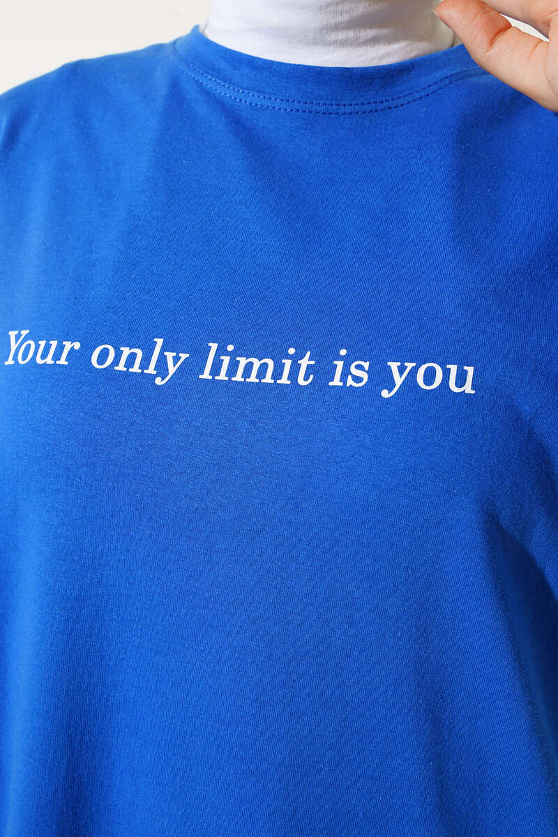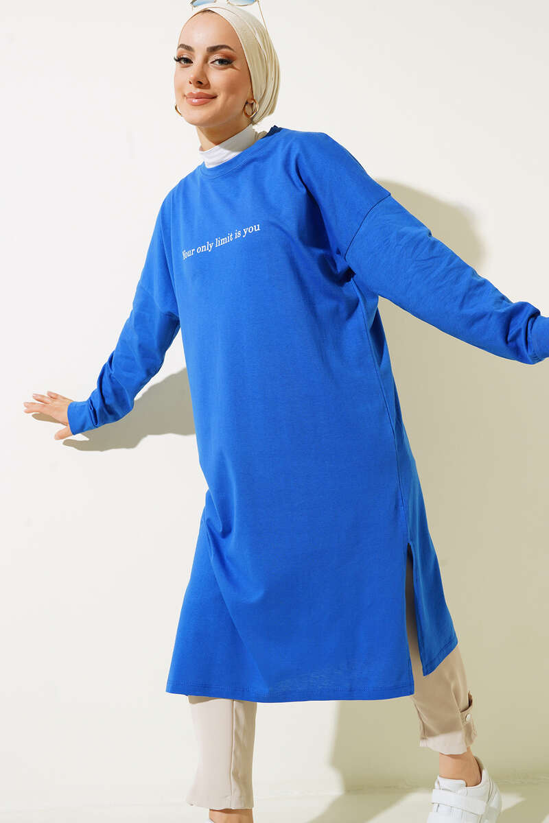 Only Limit Is You Baskılı Uzun Tunik Saks