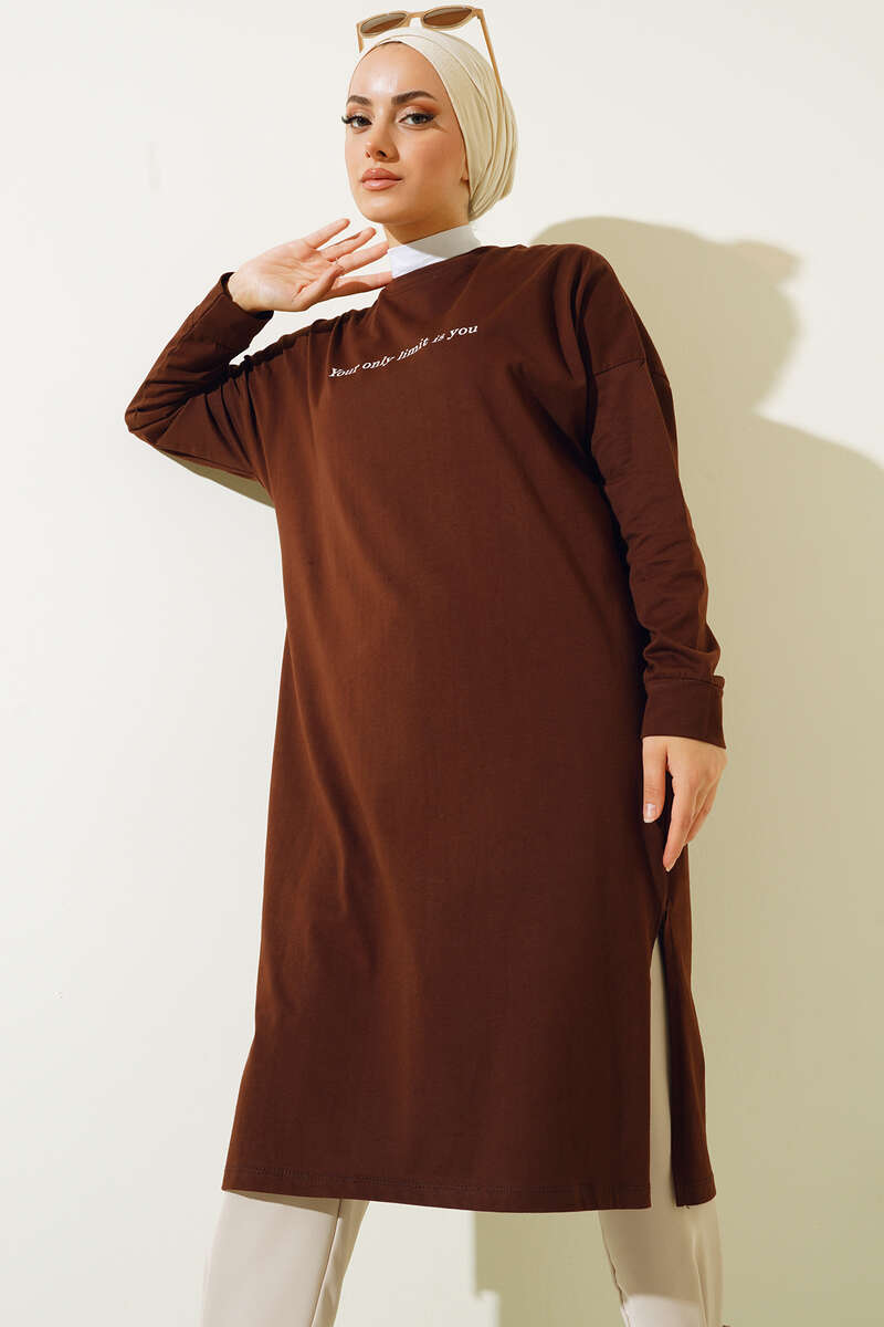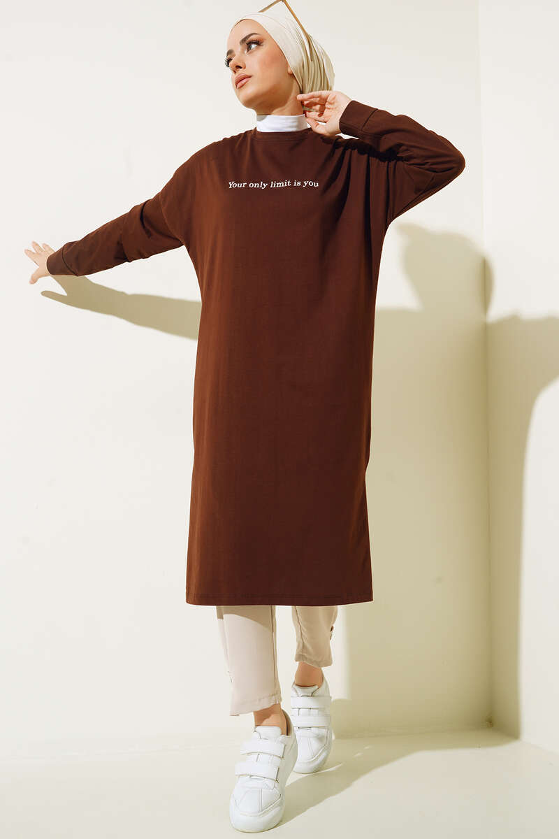 Only Limit Is You Baskılı Uzun Tunik Kahve