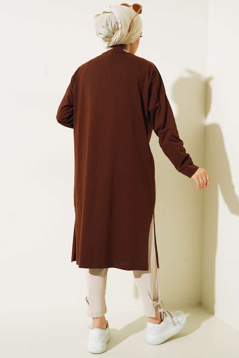 Balon Kol Kabartmalı Triko Tunik Kestane