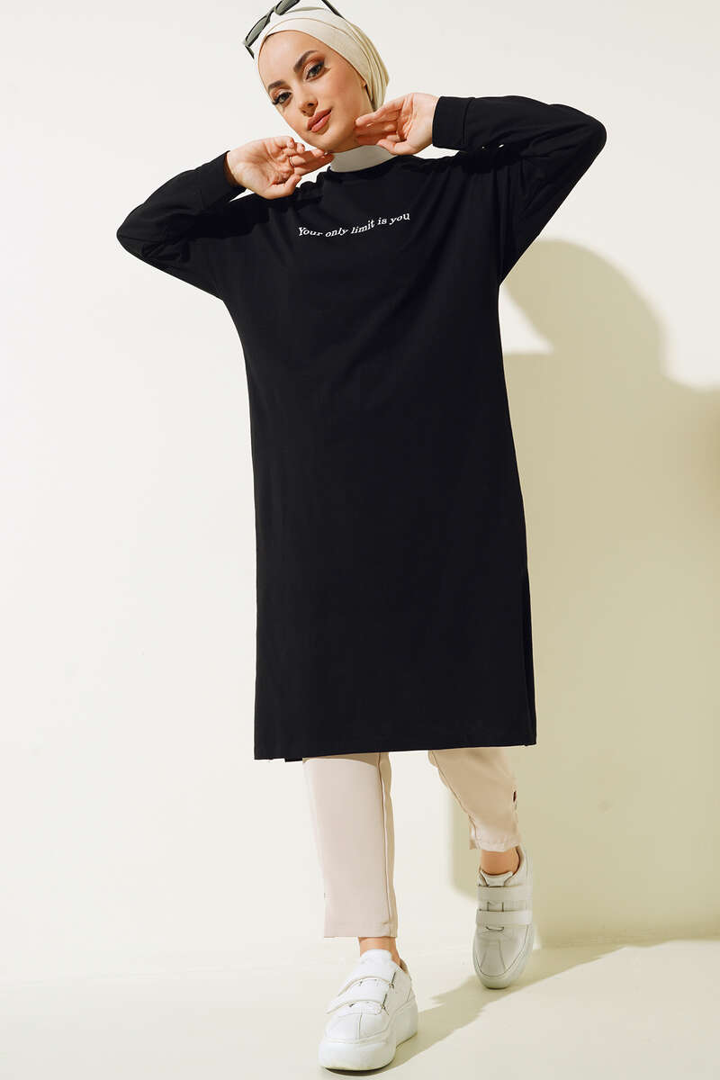 Only Limit Is You Baskılı Uzun Tunik Siyah