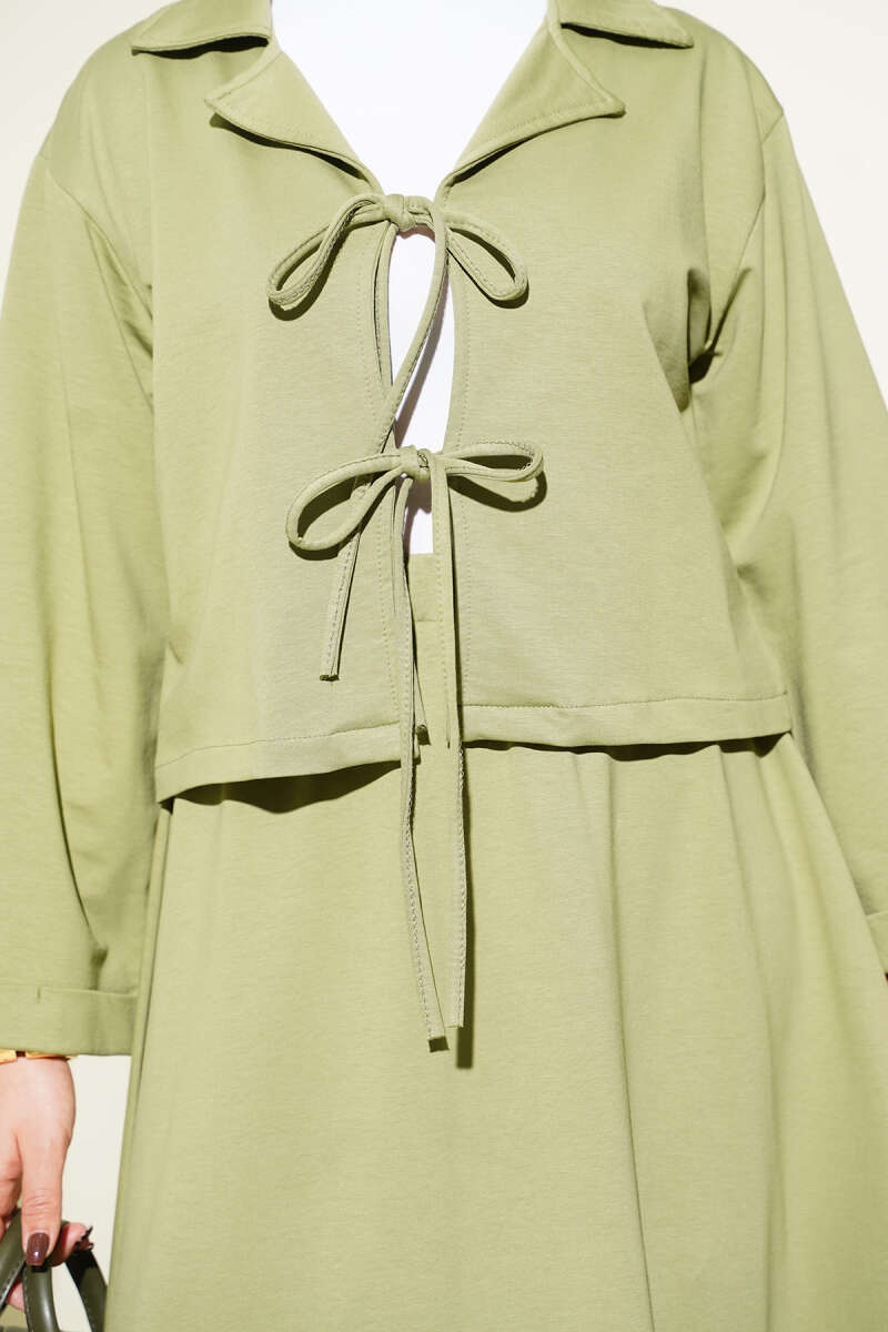 Önü Bağcık Detaylı Etekli İkili Takım Bej
