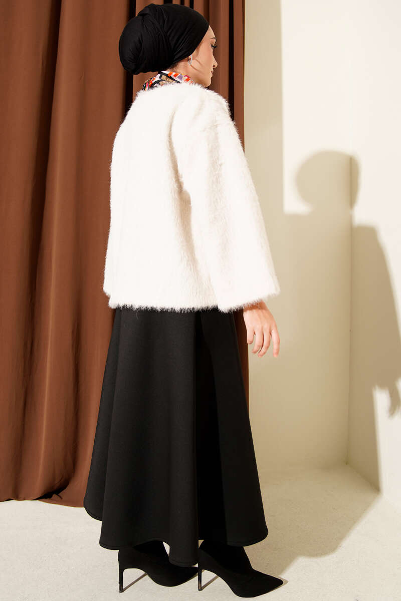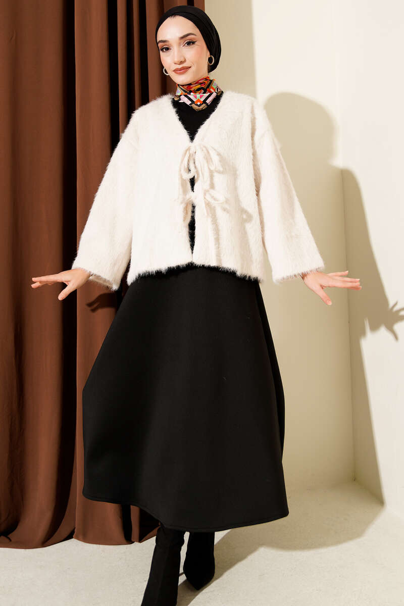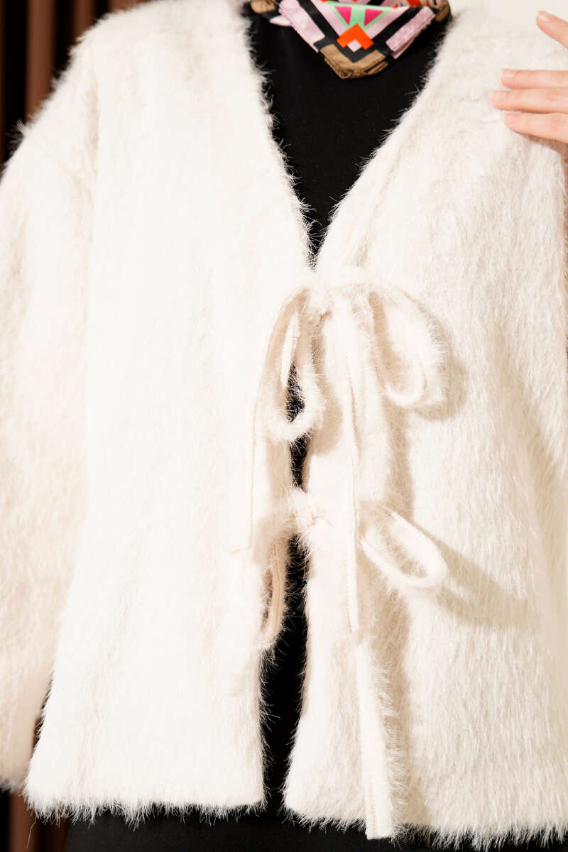 Önü Bağlamalı Buklet Kısa Kimono Latte