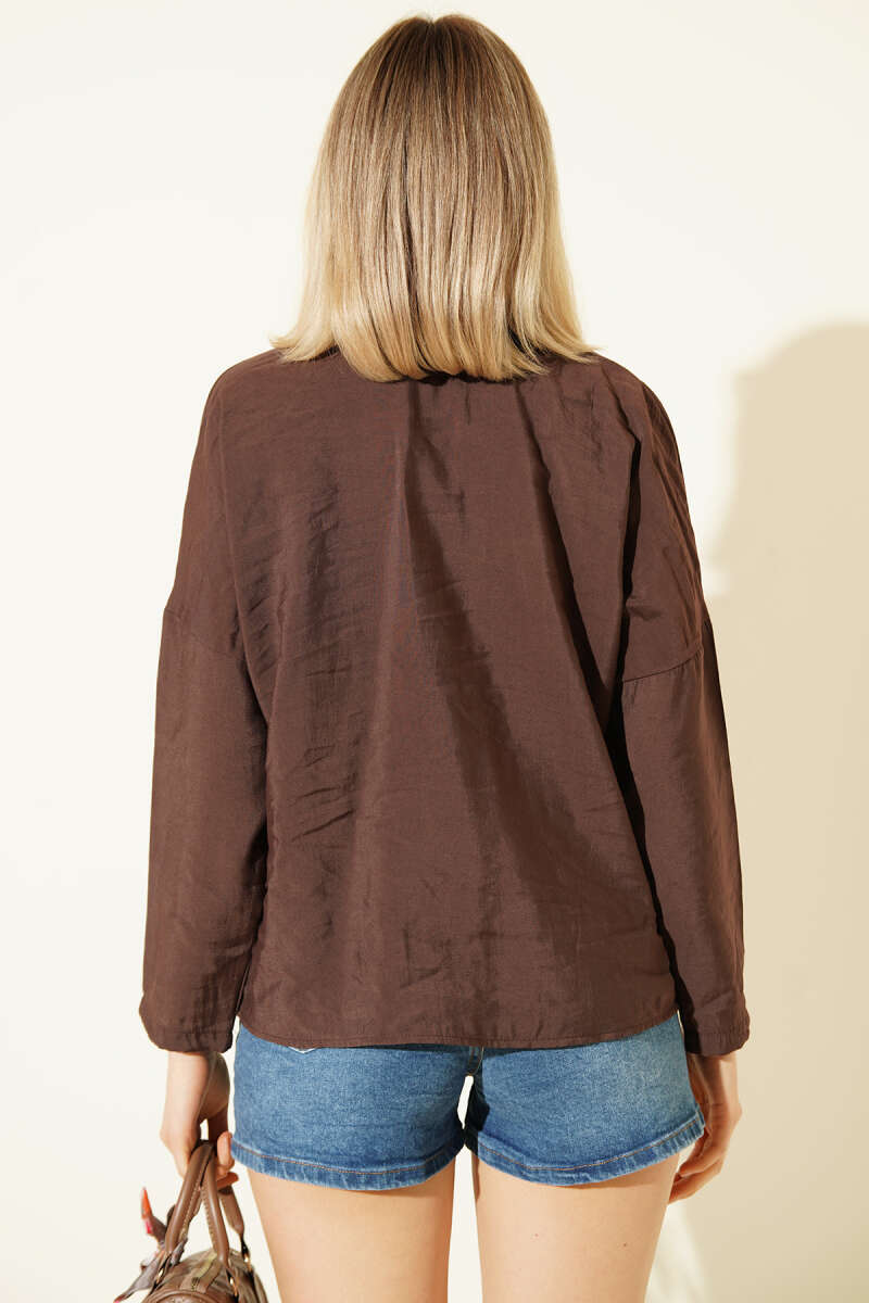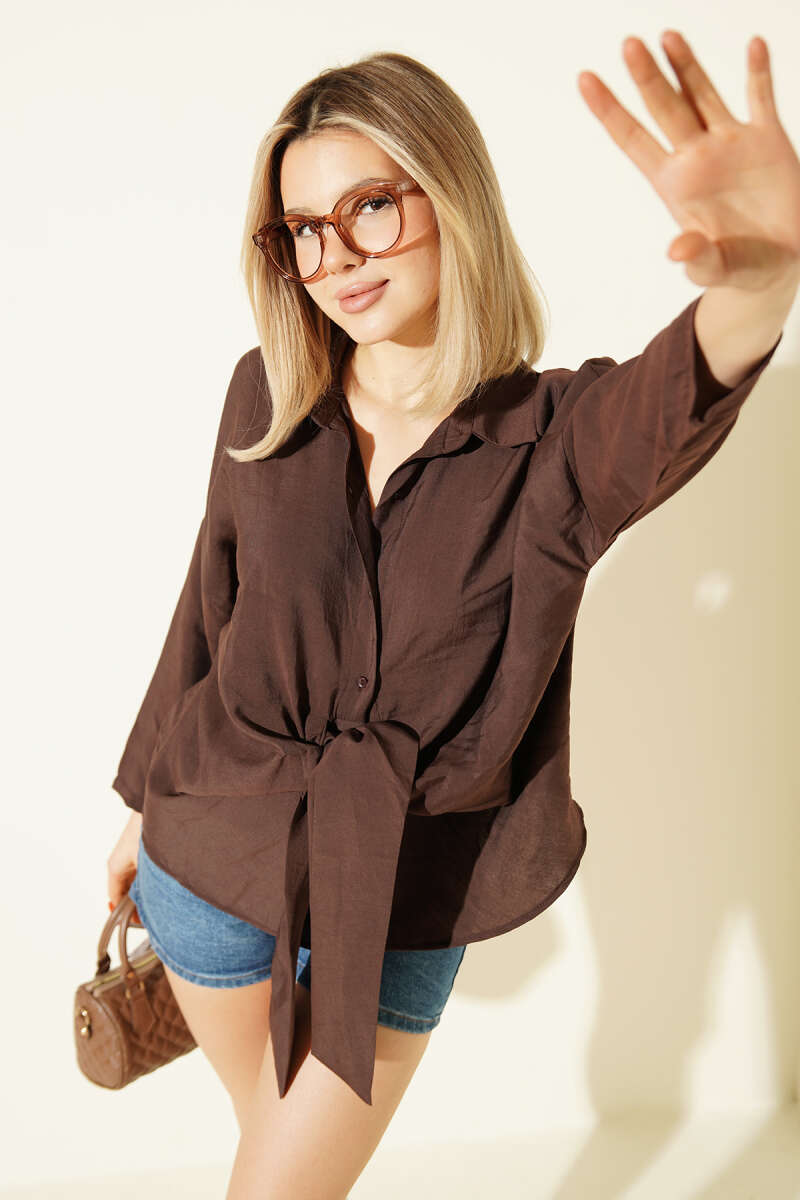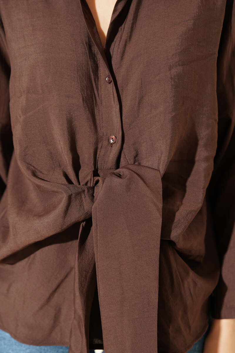 Önü Bağlama Detaylı Modal Gömlek Kahve