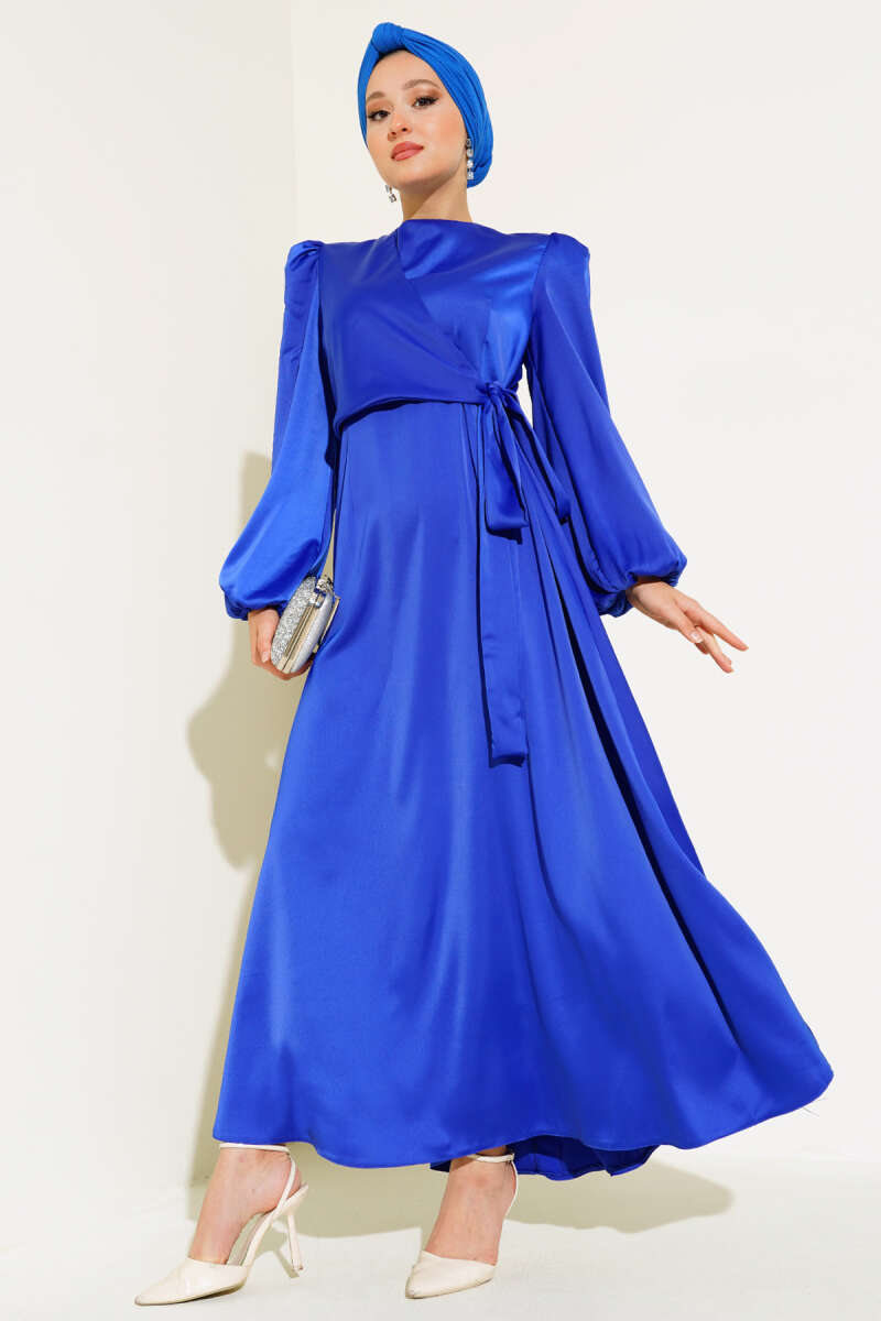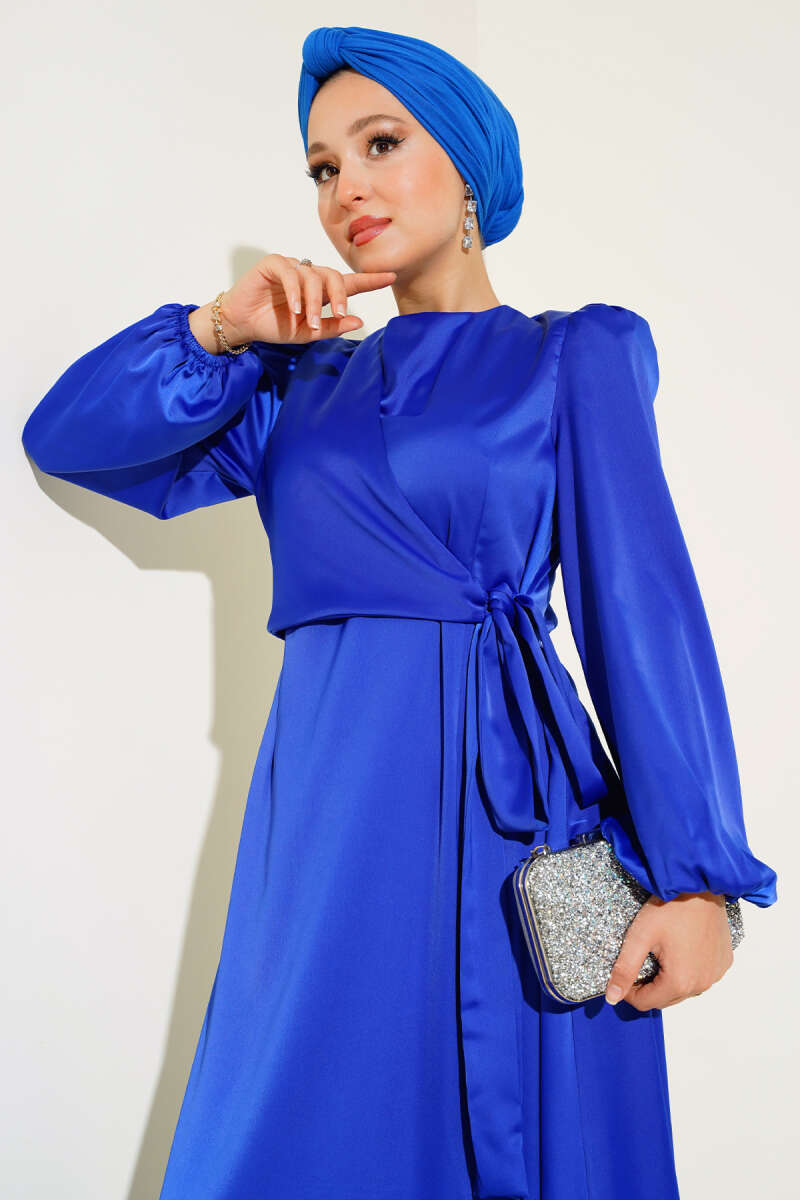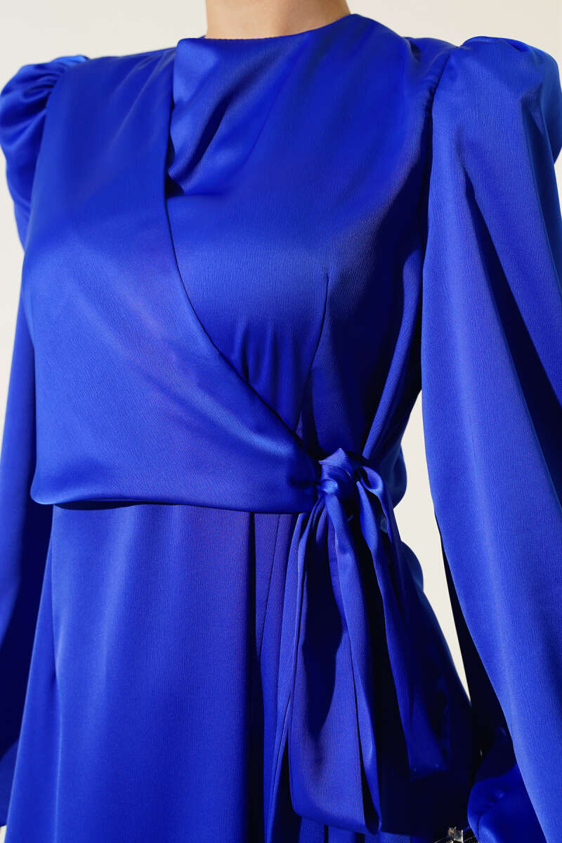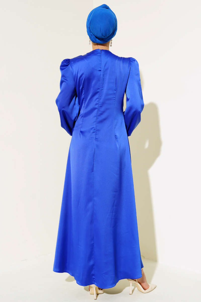 Omuz Pelerinli Taş Detaylı Abiye Elbise Lacivert