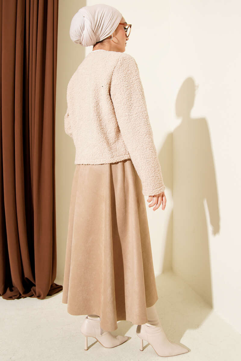 Önü Bağcıklı Sakallı Kısa Kimono Ekru