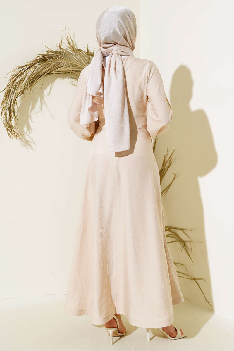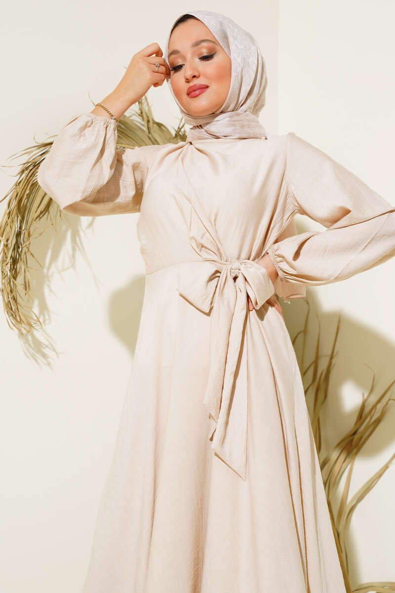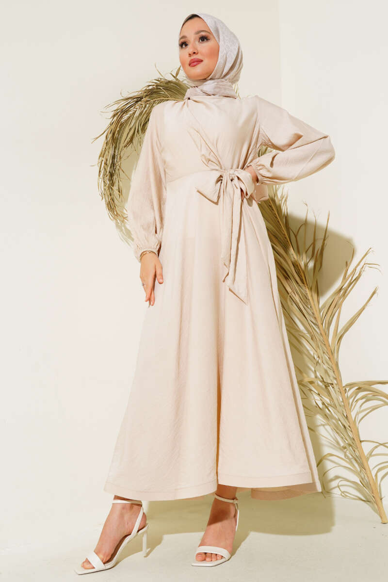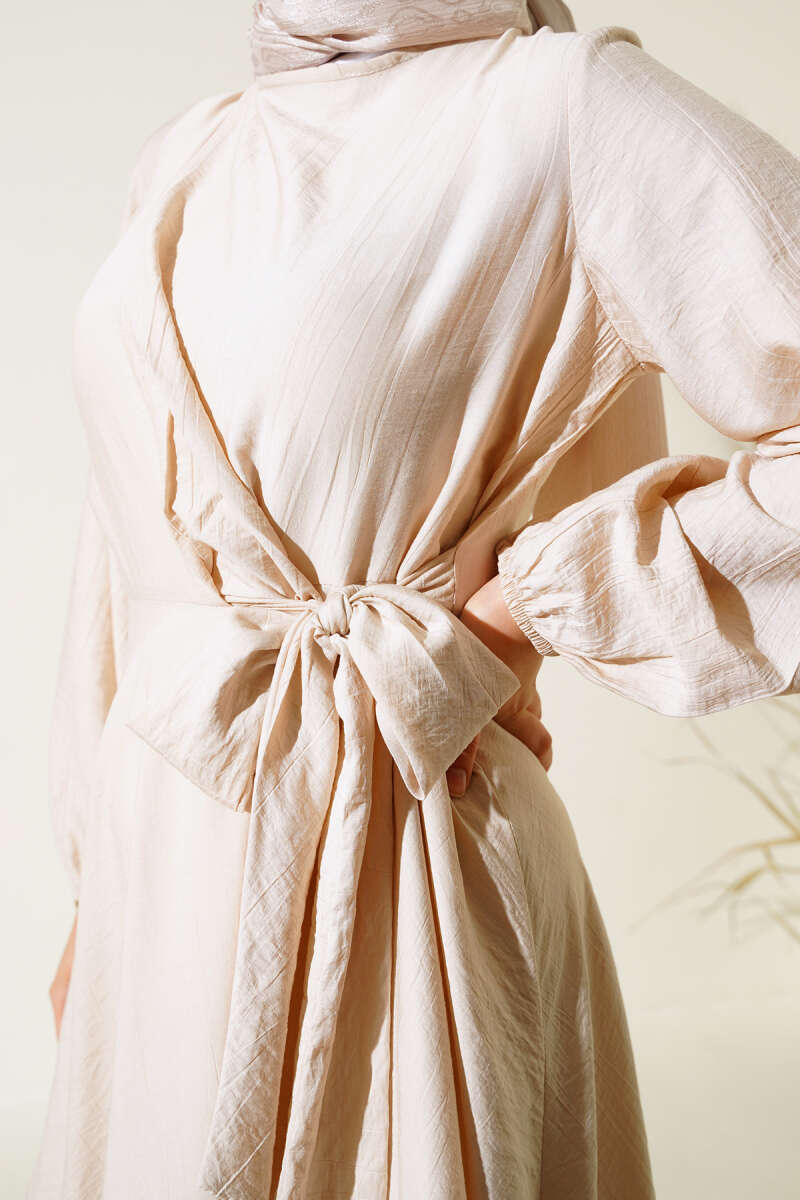 Gömlek Yaka Kuşaklı Kaşe Panço Bej