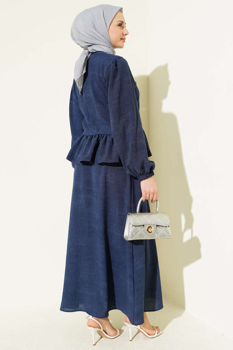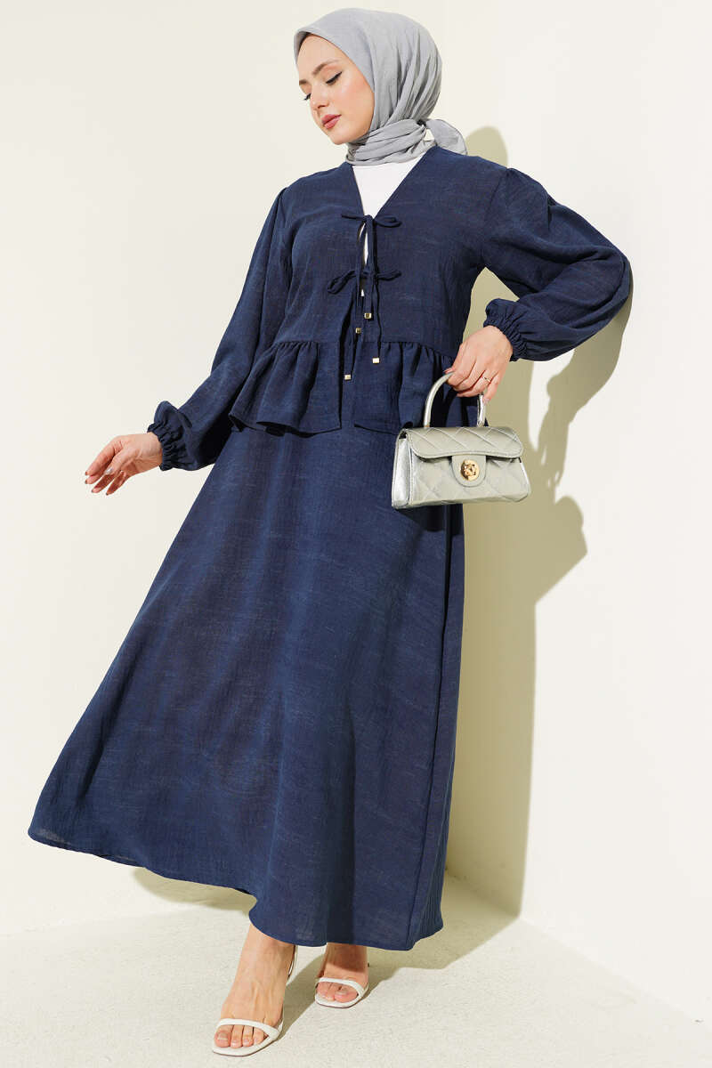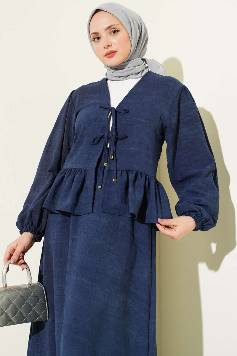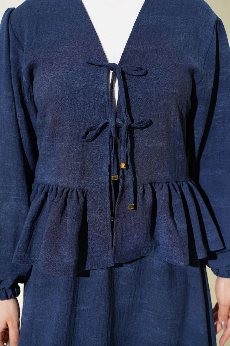 Önü Bağlamalı Fırfırlı Etekli İkili Takım Lacivert
