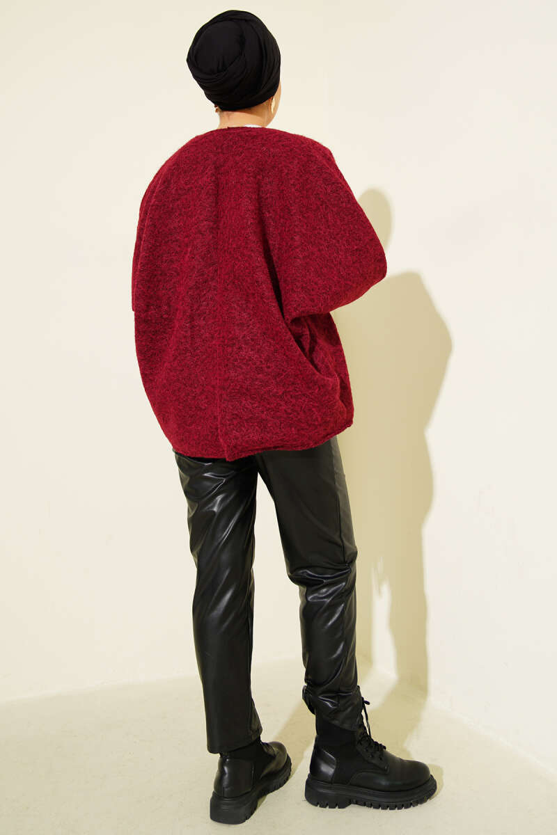 Kapüşonlu Fermuarlı Cepli Hırka Bordo