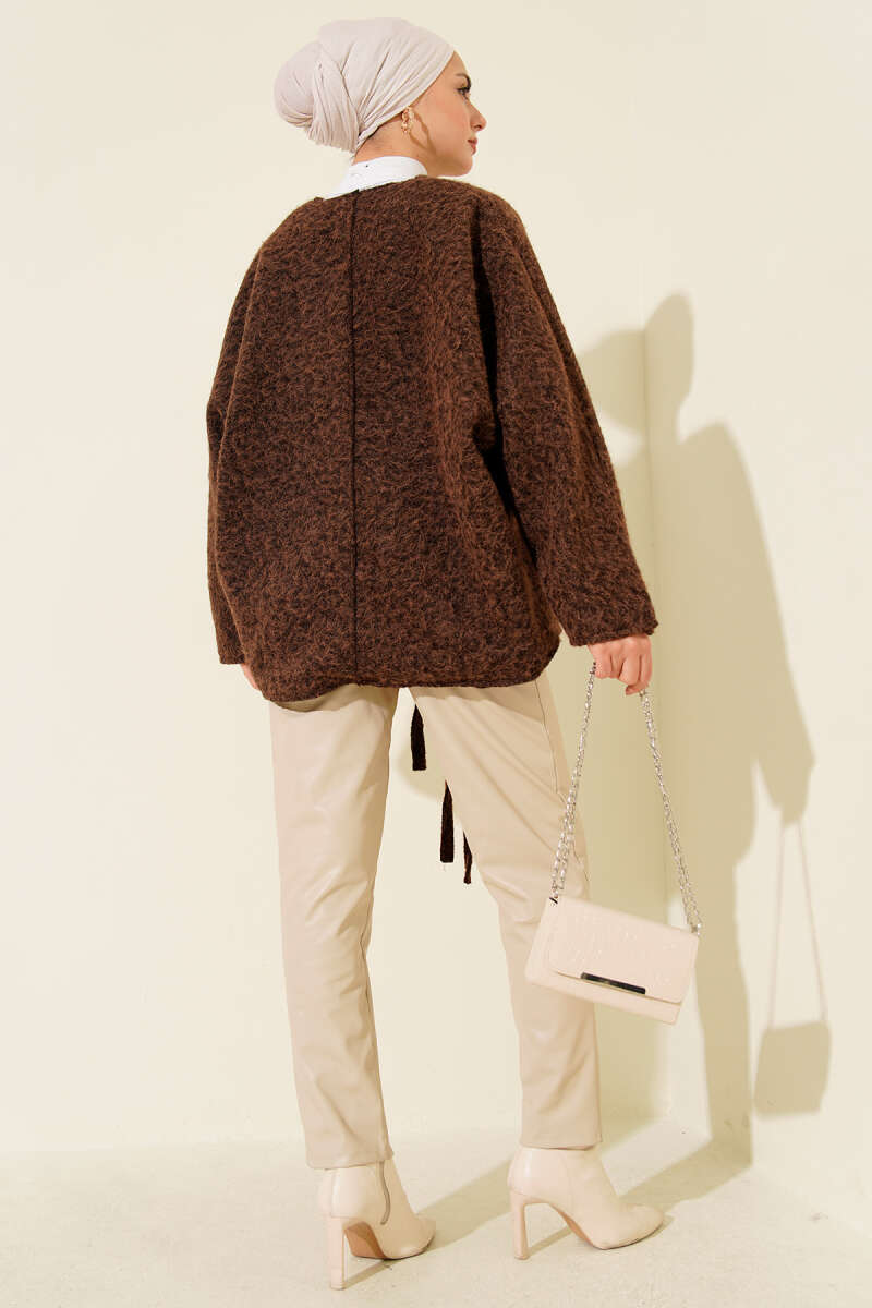 Leopar Desenli Şardonlu Triko Hırka Latte