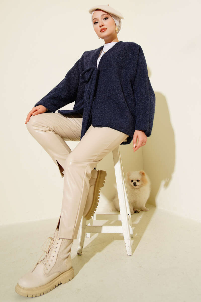 Gold Düğmeli Triko Kısa Hırka Lacivert