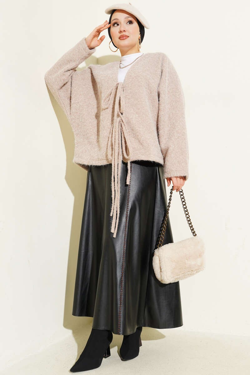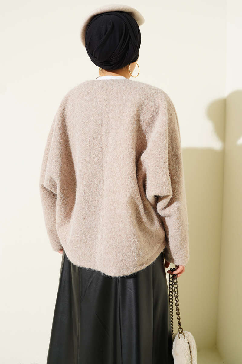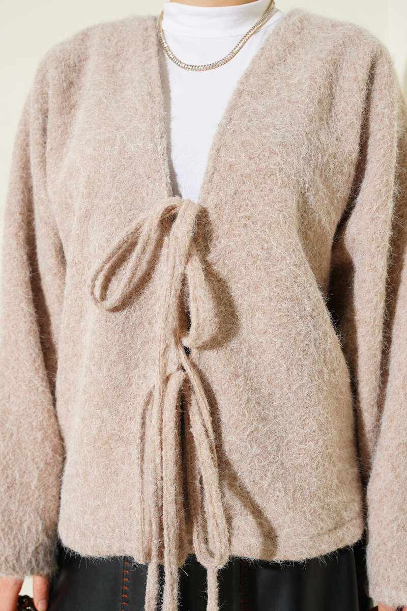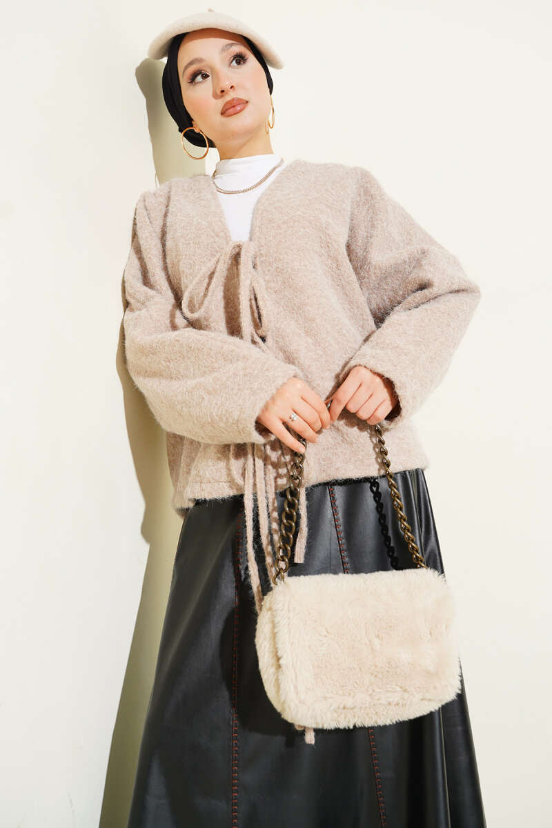 Önü Bağlamalı Keçe Kısa Ceket Kahve