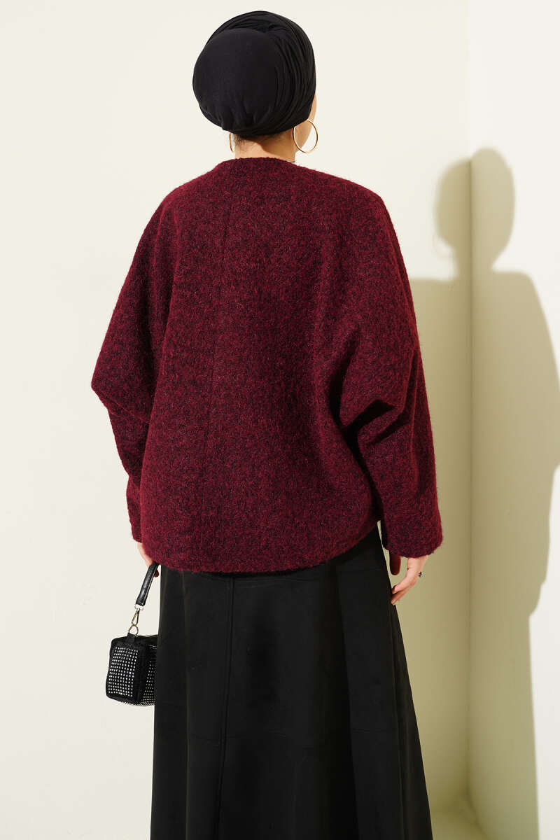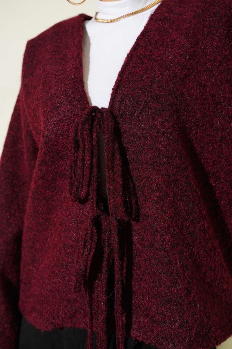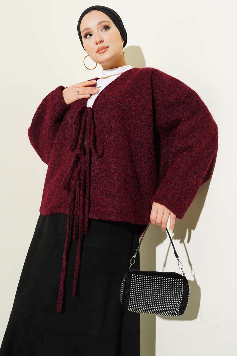 Önü Bağlamalı Keçe Kısa Ceket Kahve