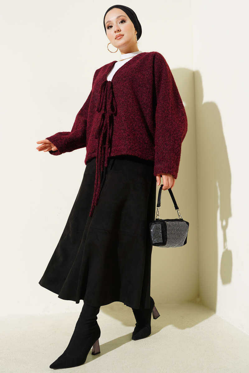 Bel Tünelli Lastikli Peluş Hırka Kestane
