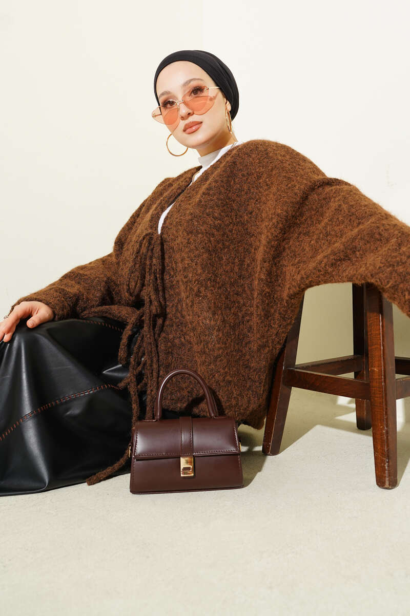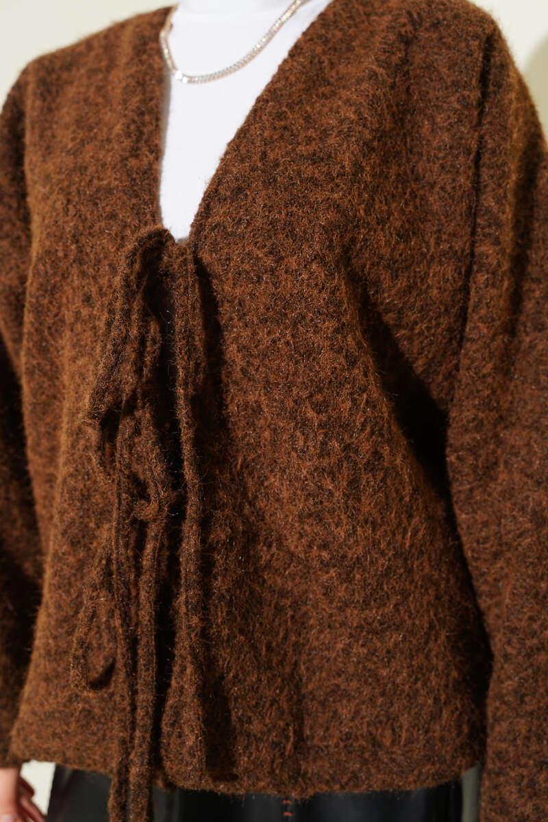 Önü Bağlamalı Keçe Kısa Ceket Bej