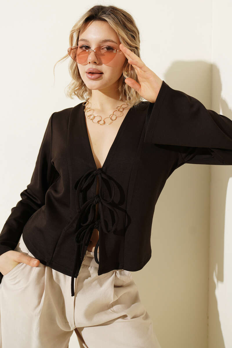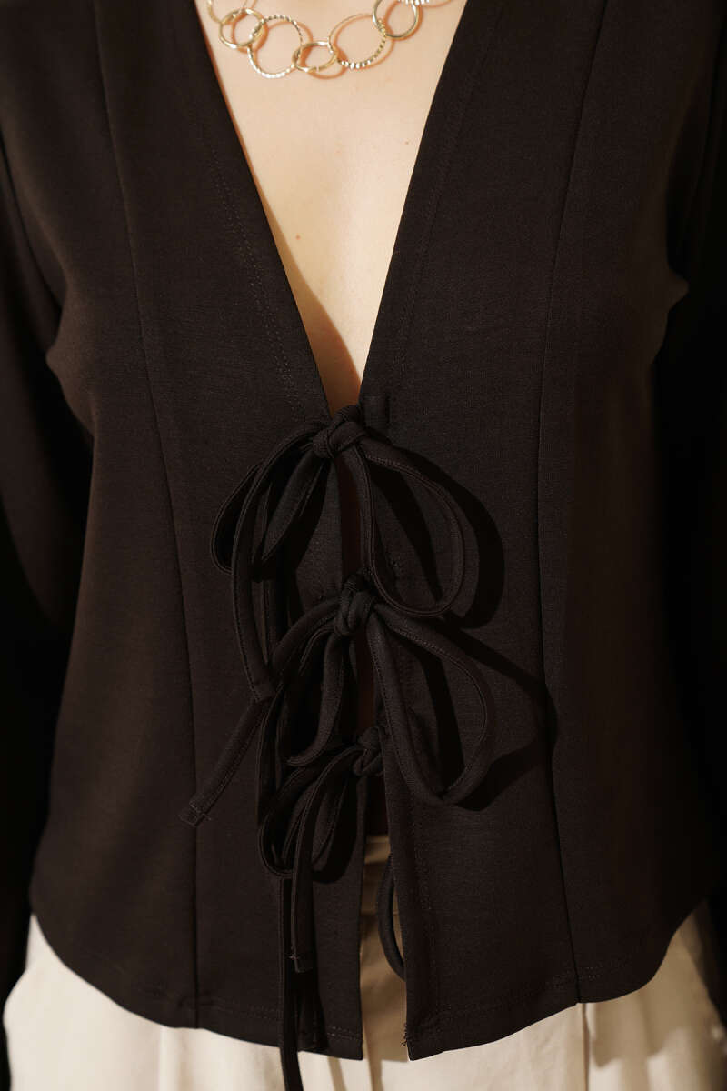Önü Bağlamalı Kısa Hırka Acı Kahve