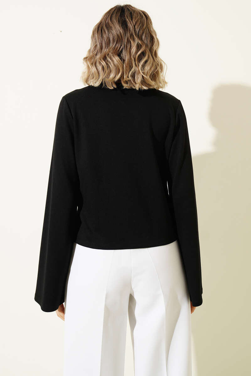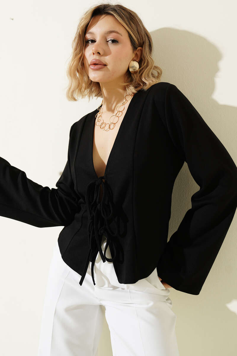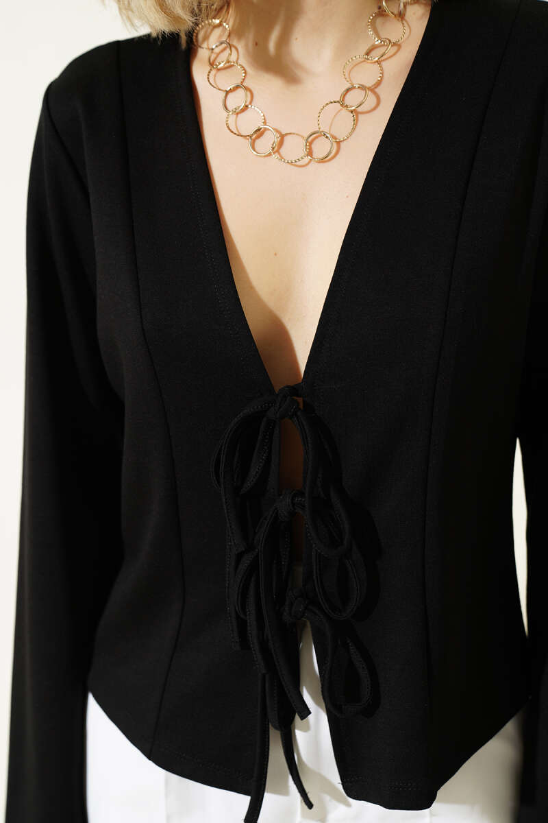 Önü Bağlamalı Kısa Hırka Siyah