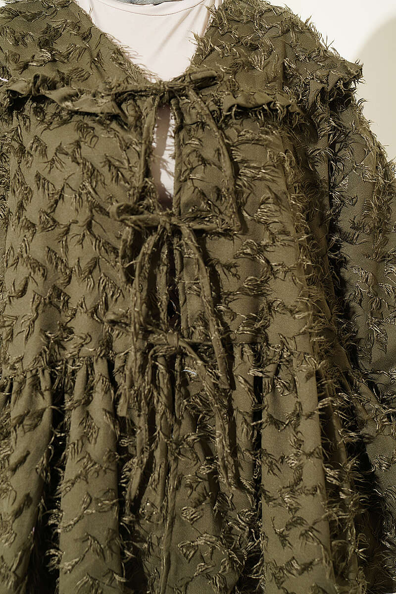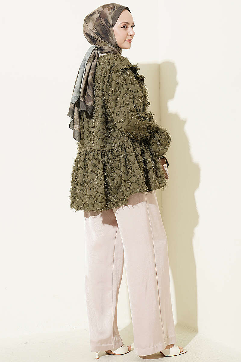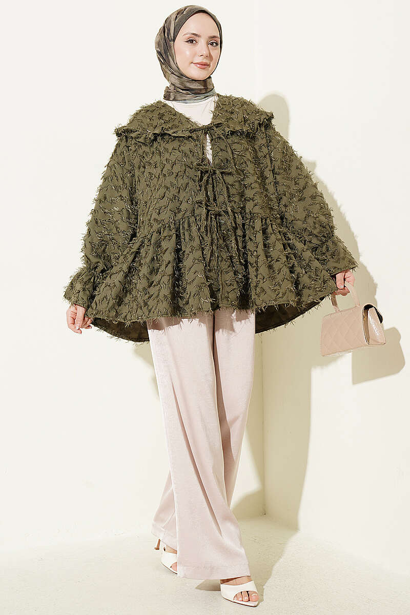 Önü Bağlamalı Püsküllü Kimono Haki