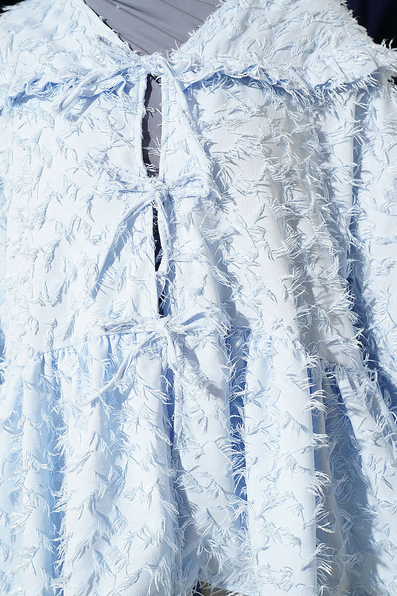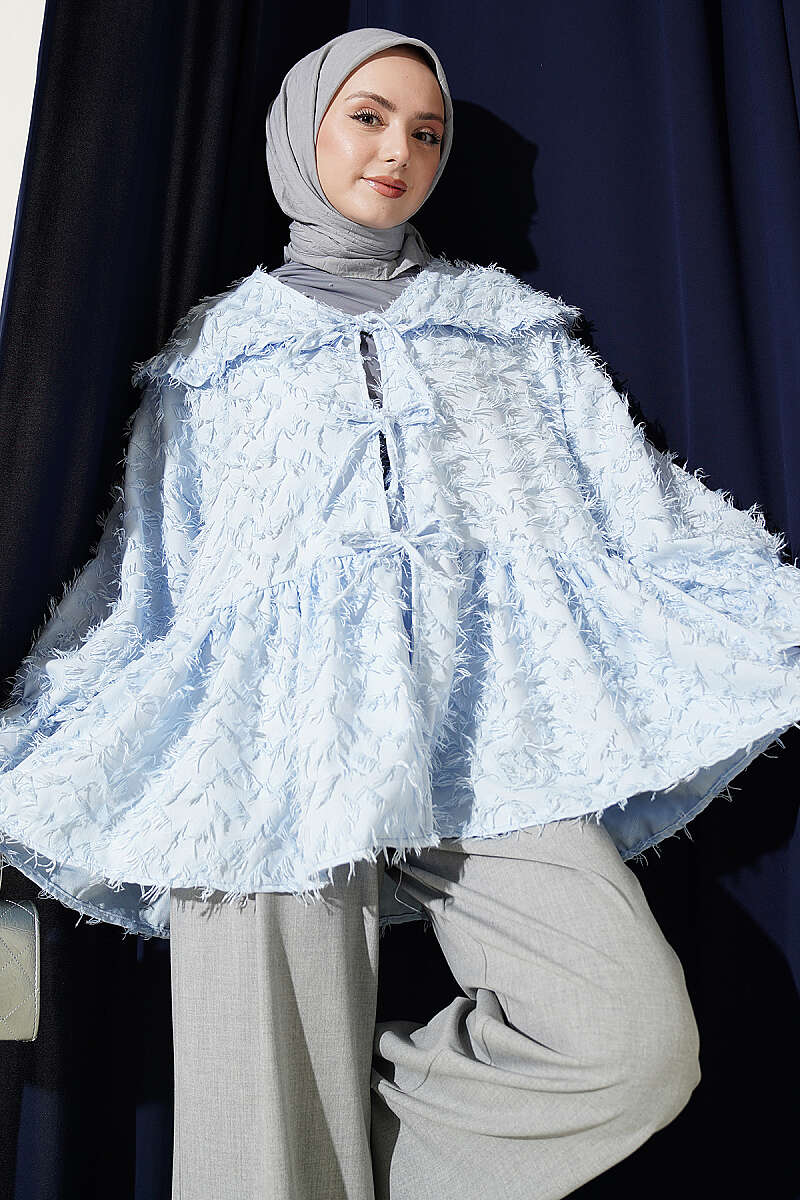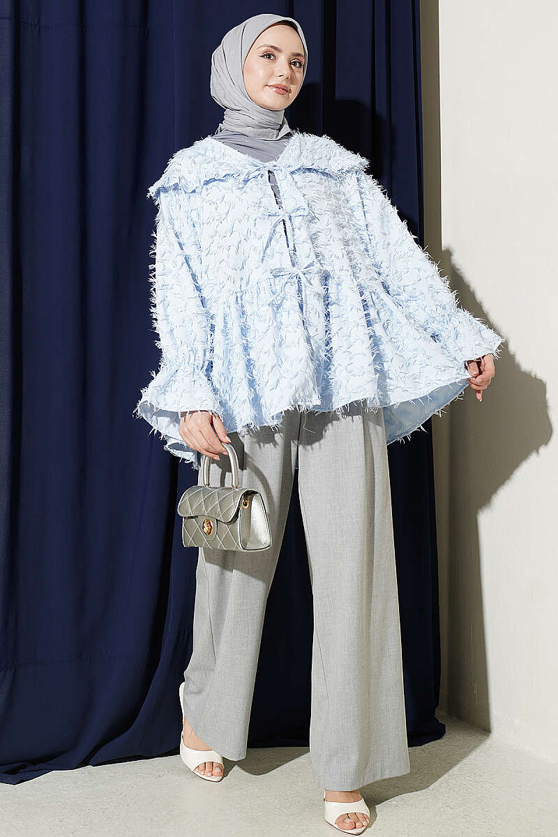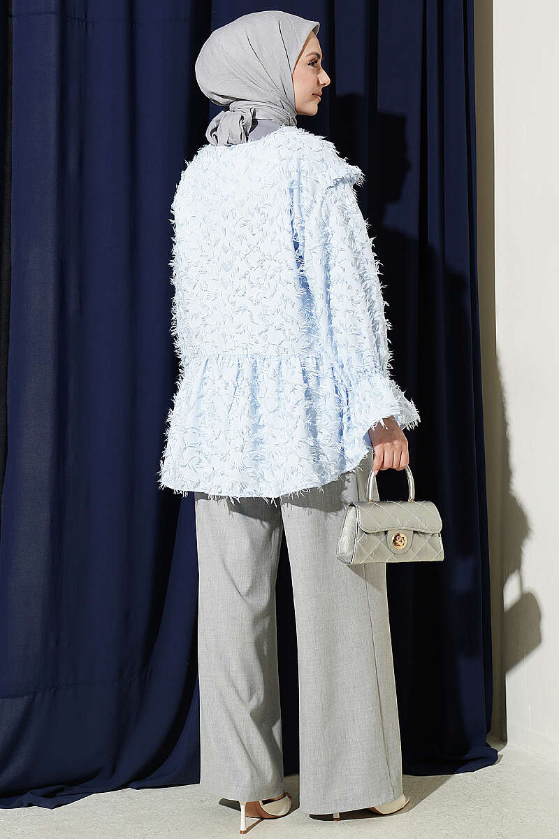 Bilekleri Yakası Fırfırlı Gömlek Mavi