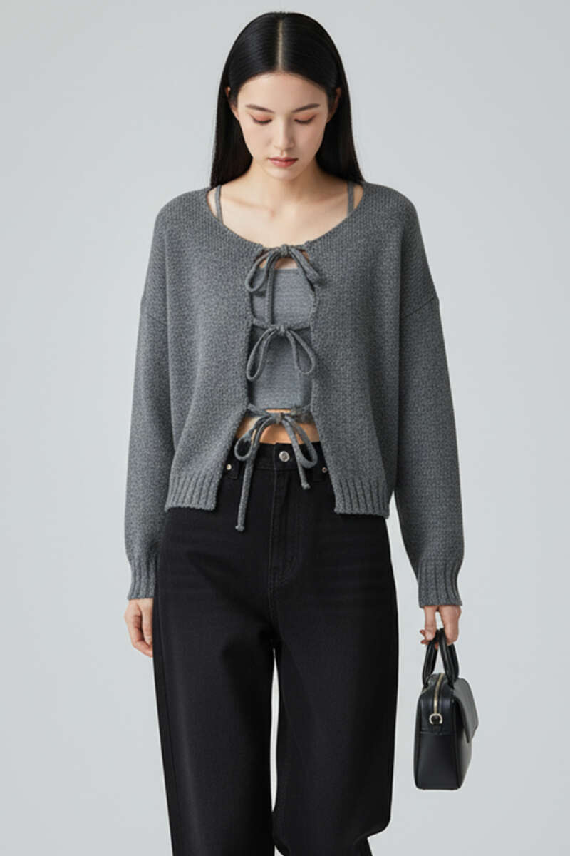 Taşlı Fermuarlı Kısa Triko Hırka Taş