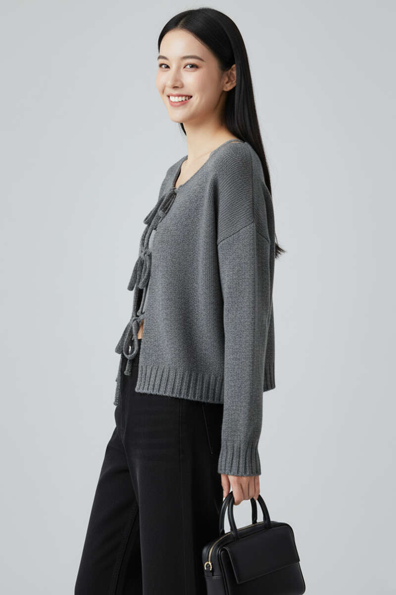 Düğme Detaylı Cepli Triko Hırka Siyah