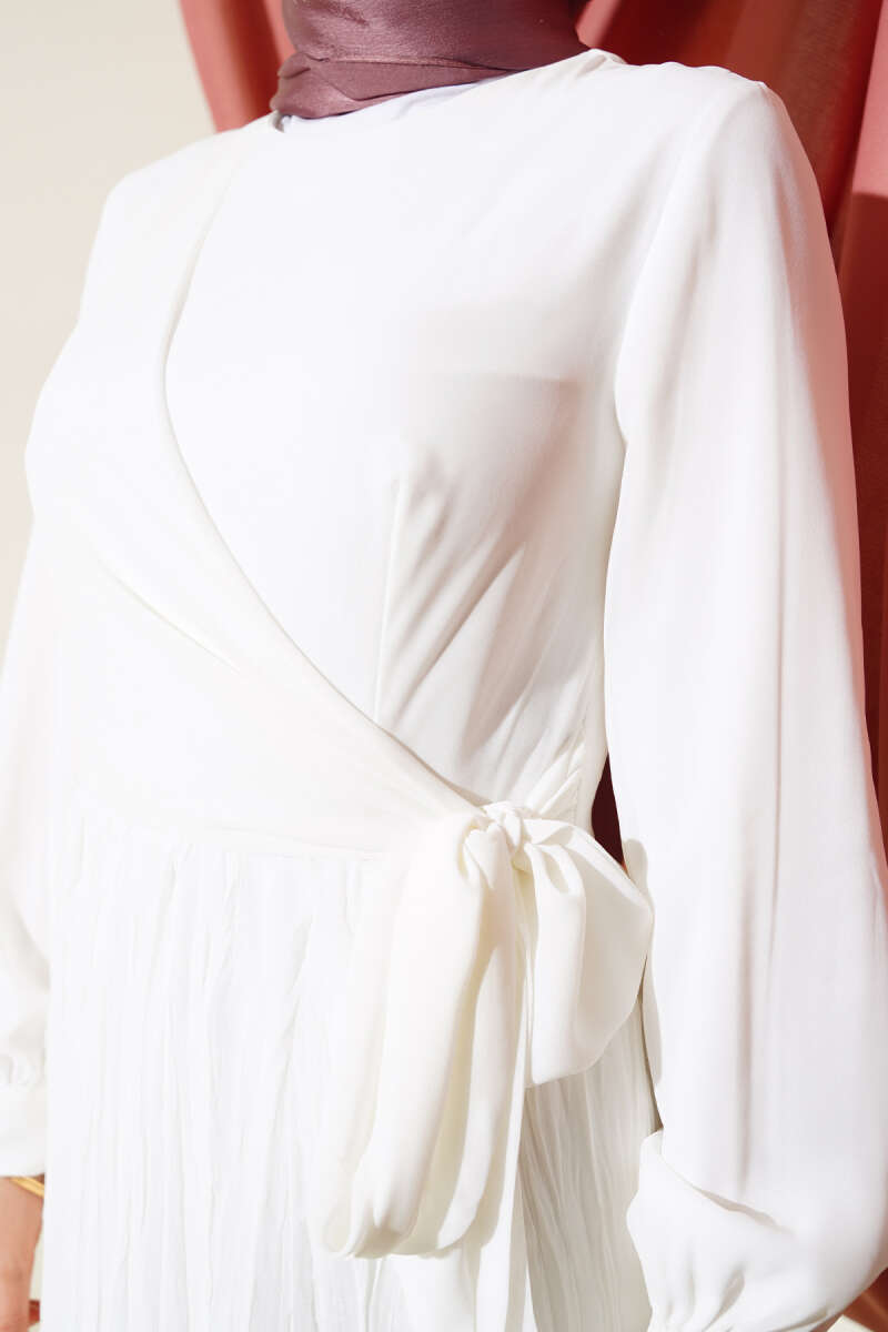 Bisiklet Yaka Armalı İp Kuşaklı Elbise Gri