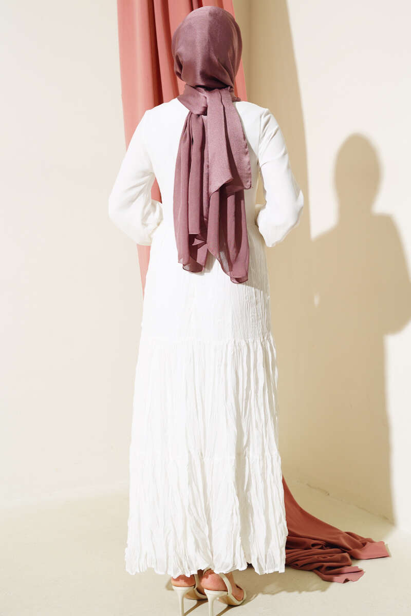 Baklava Desen Ajurlu Triko Elbise Gül Kurusu