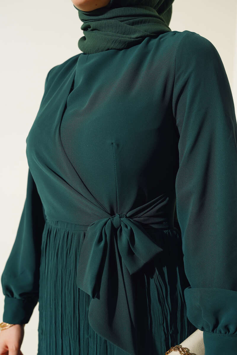 Bel Taşlı Pelerinli Abiye Elbise Siyah