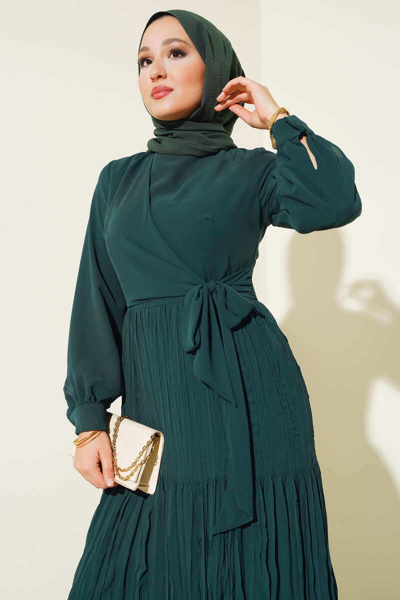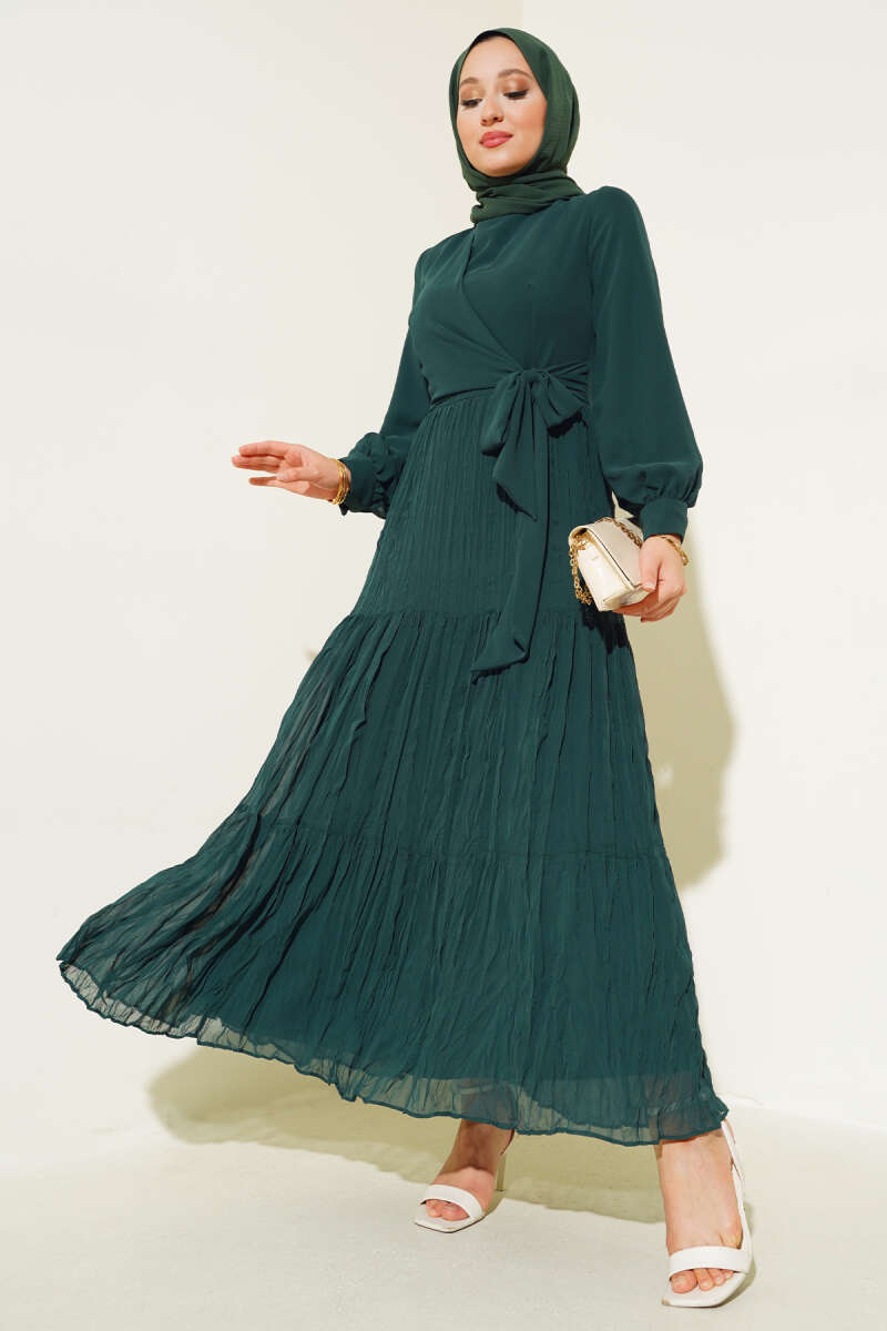 Bel Taşlı Pelerinli Abiye Elbise Kahve