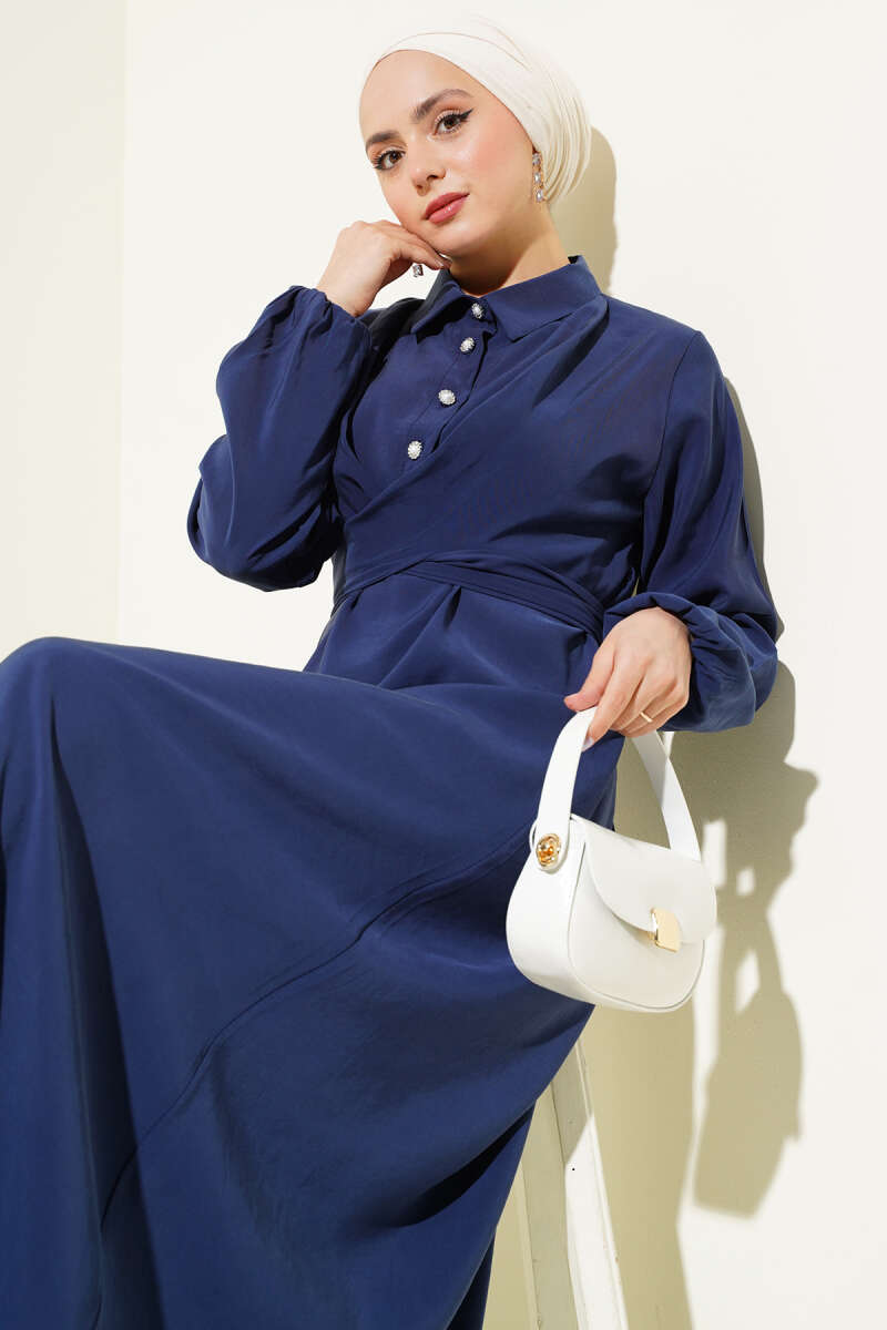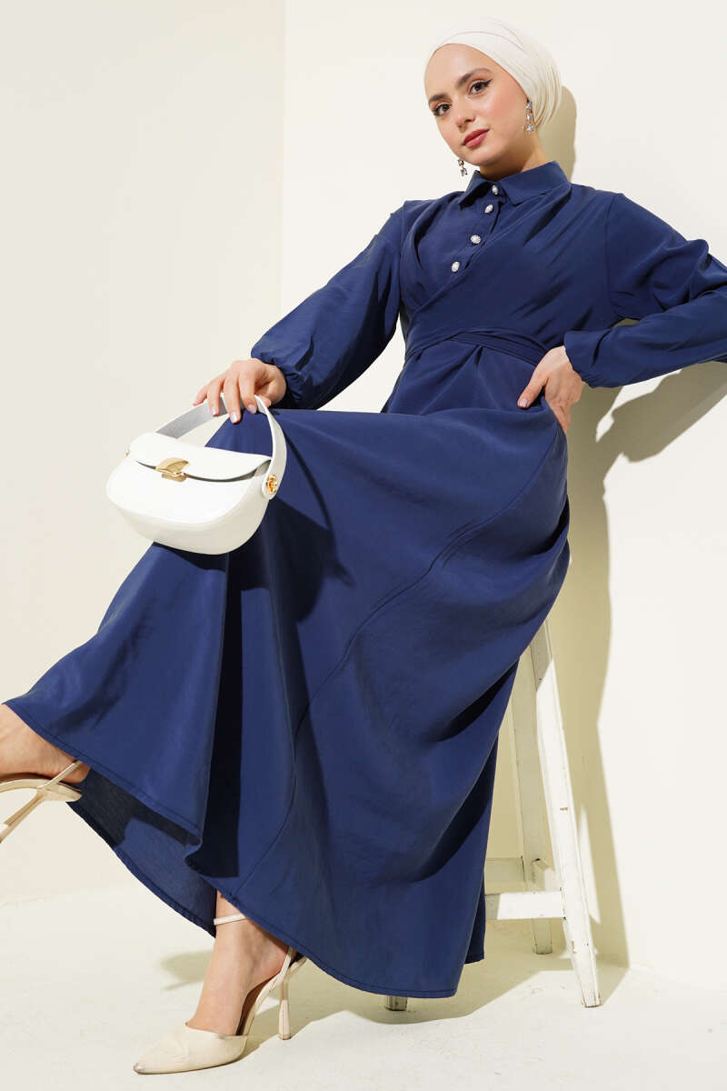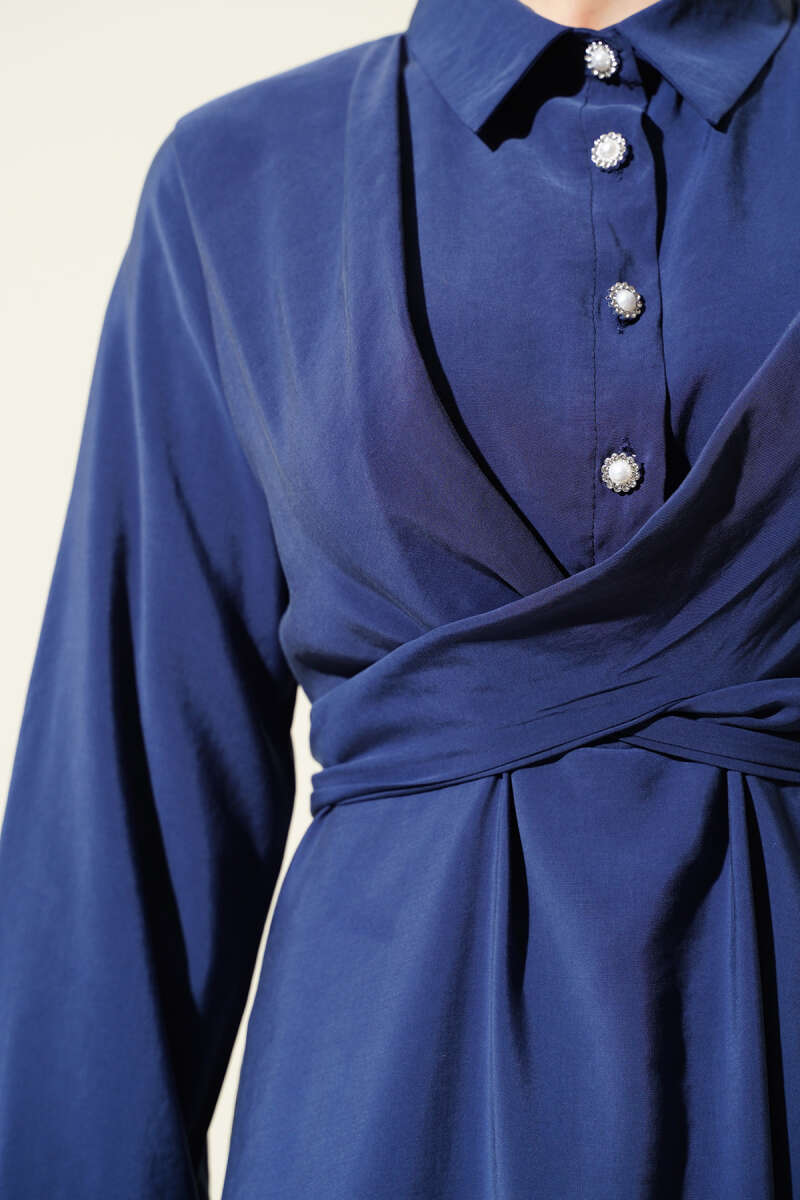 Gömlek Yaka Düğmeli Triko Elbise Lacivert
