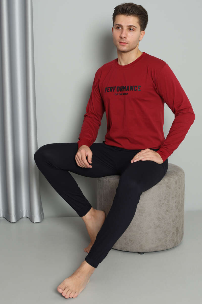 Önü Baskılı Paça Lastikli Erkek Pijama Takım Bordo