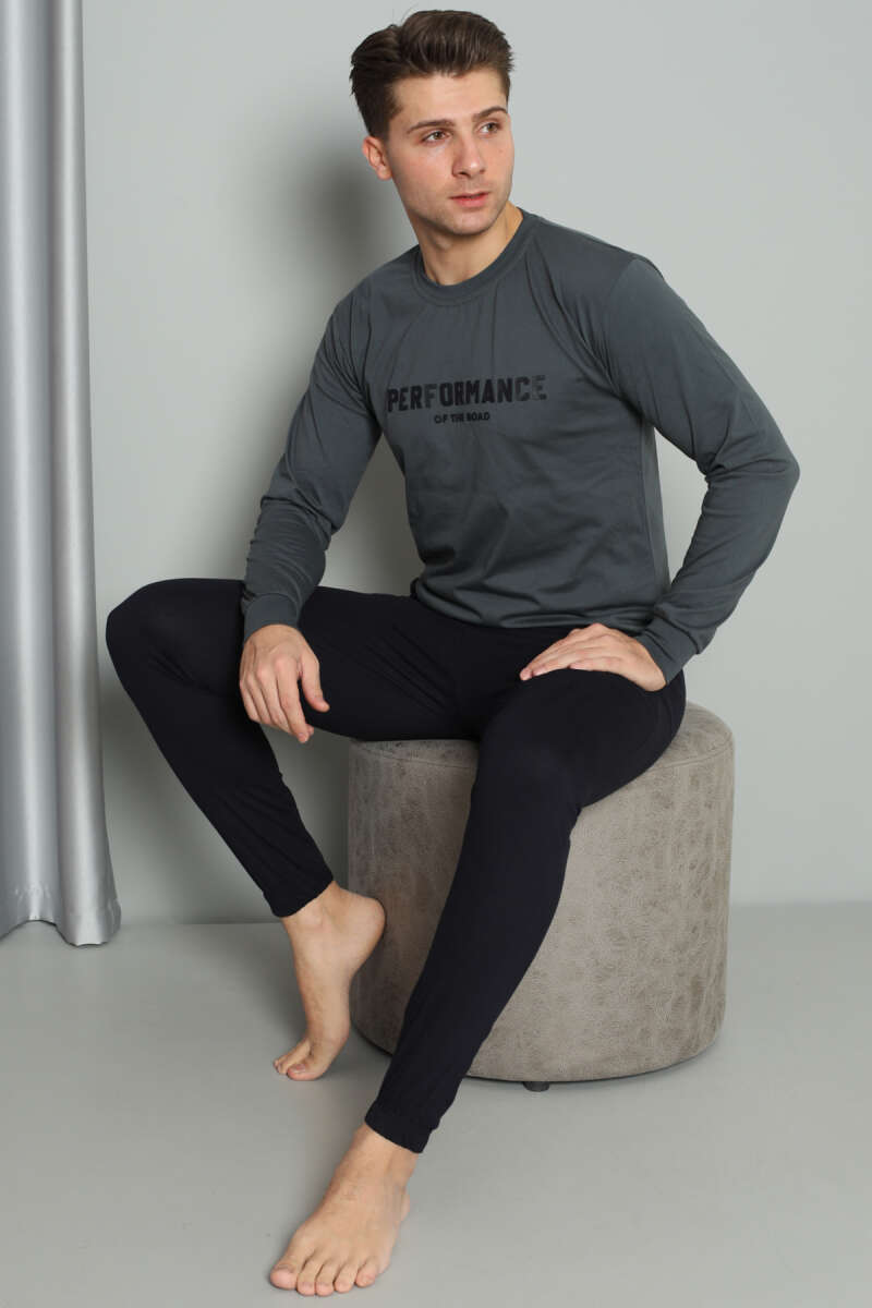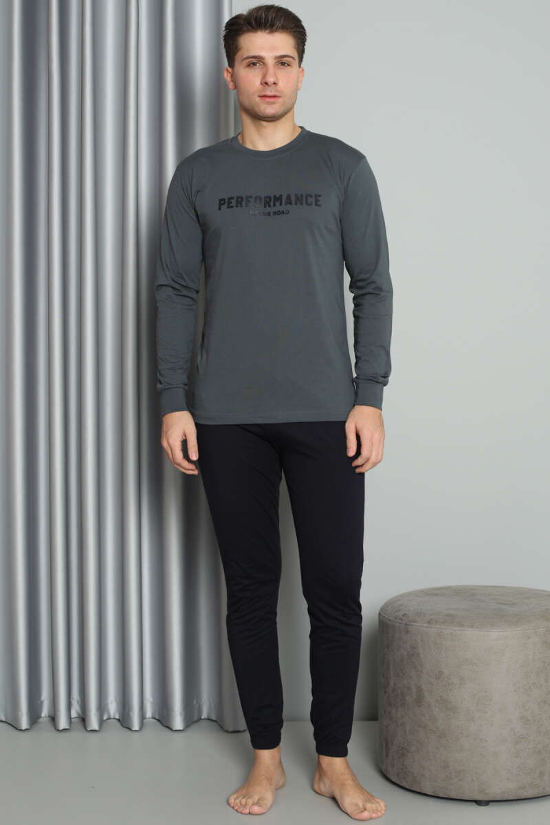 Önü Baskılı Paça Lastikli Erkek Pijama Takım Füme