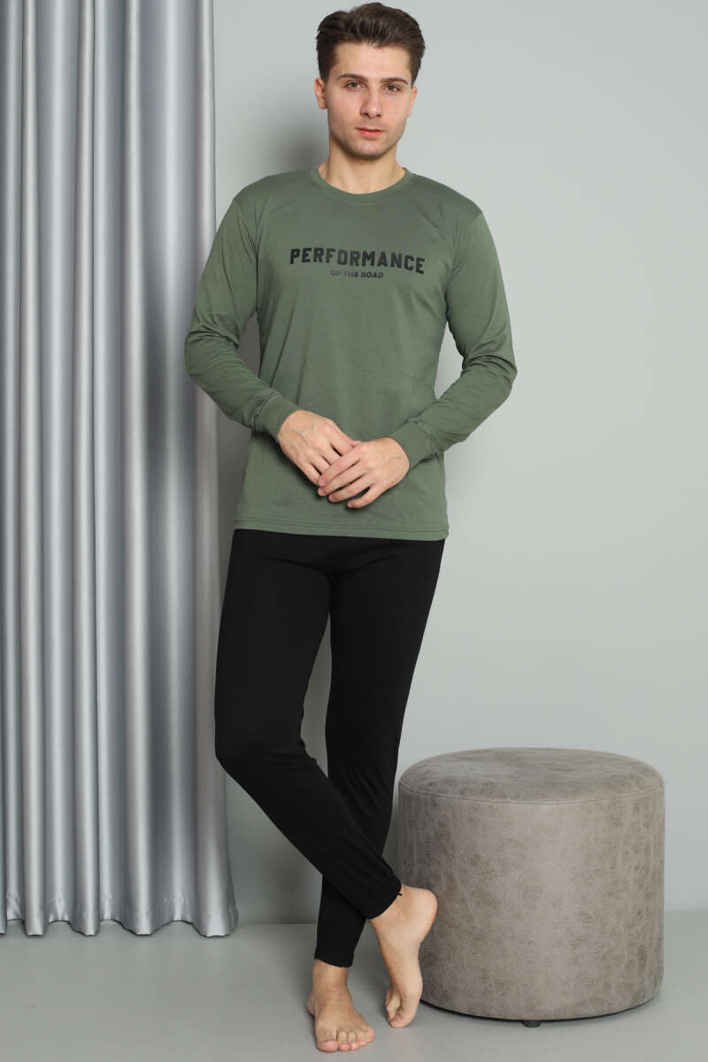 Önü Baskılı Paça Lastikli Erkek Pijama Takım Haki