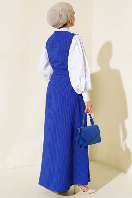 Yeni sezon jile elbisemiz şık duruşuyla sizlerle beraber. Jilemizin önü boydan düğmelidir. V yakadır. Jilemizin belinde iki adet kemer köprüsü olup, bir adet kendi kumaşından kuşağı vardır. Kloş modeldir. Jile elbisemiz renk seçenekleriyle sizlerle beraber.