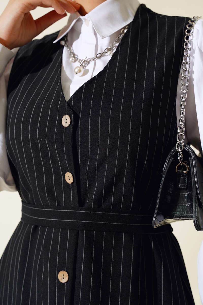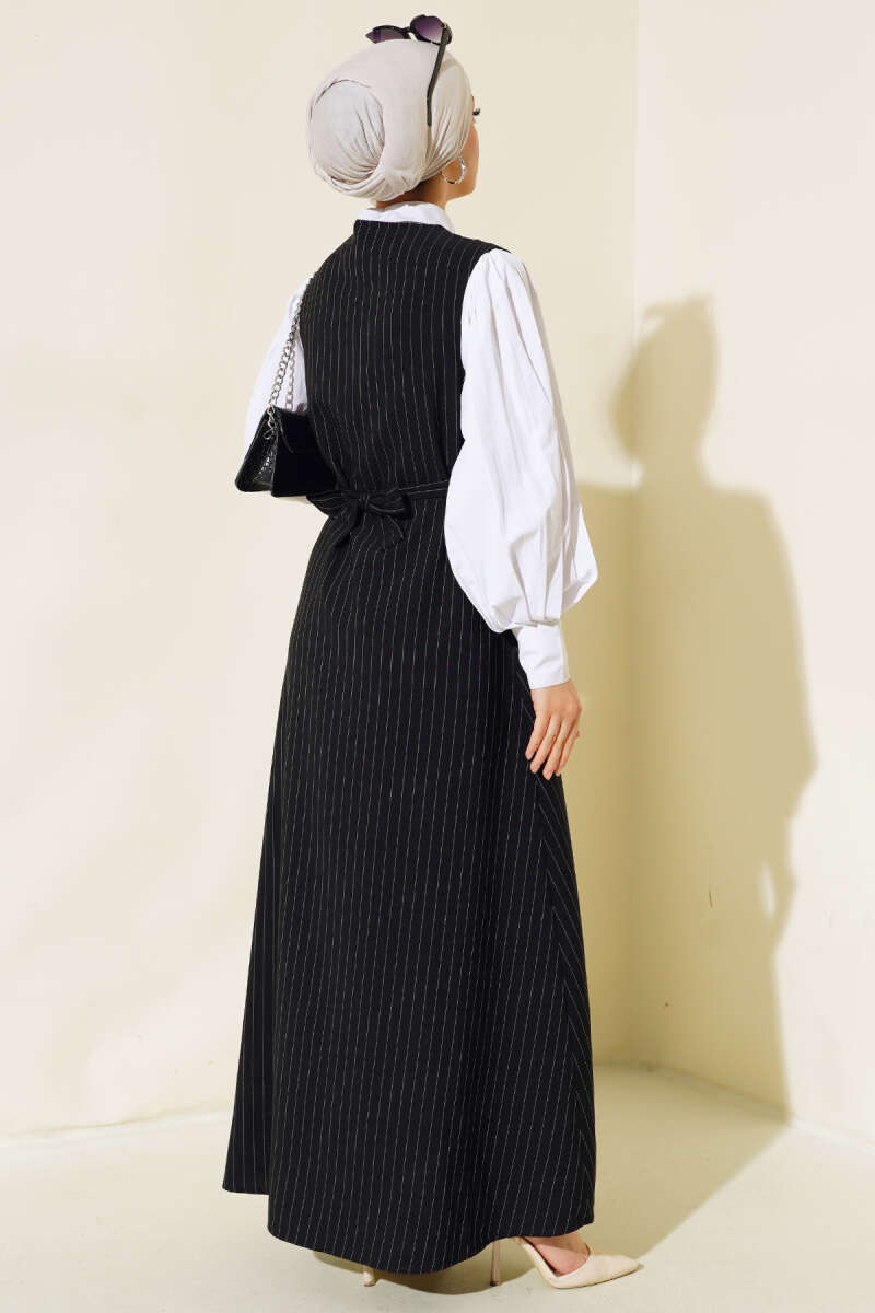 Yeni sezon jile elbisemiz şık duruşuyla sizlerle beraber. Jilemizin önü boydan düğmelidir. V yakadır. Jilemizin belinde iki adet kemer köprüsü olup, bir adet kendi kumaşından kuşağı vardır. Kloş modeldir. Jile elbisemiz renk seçenekleriyle sizlerle beraber.