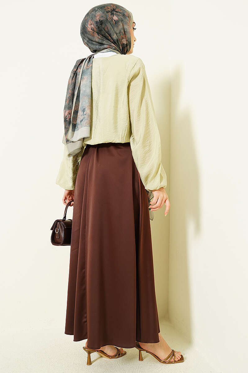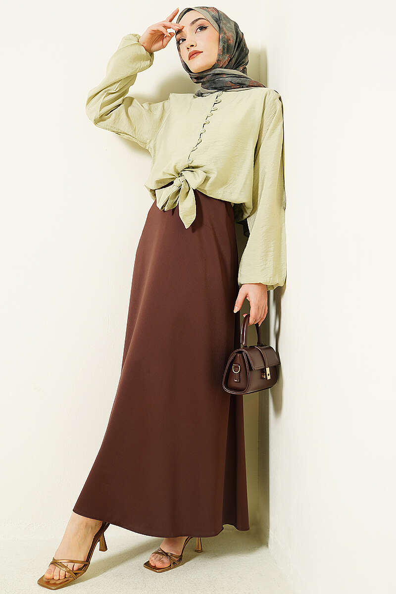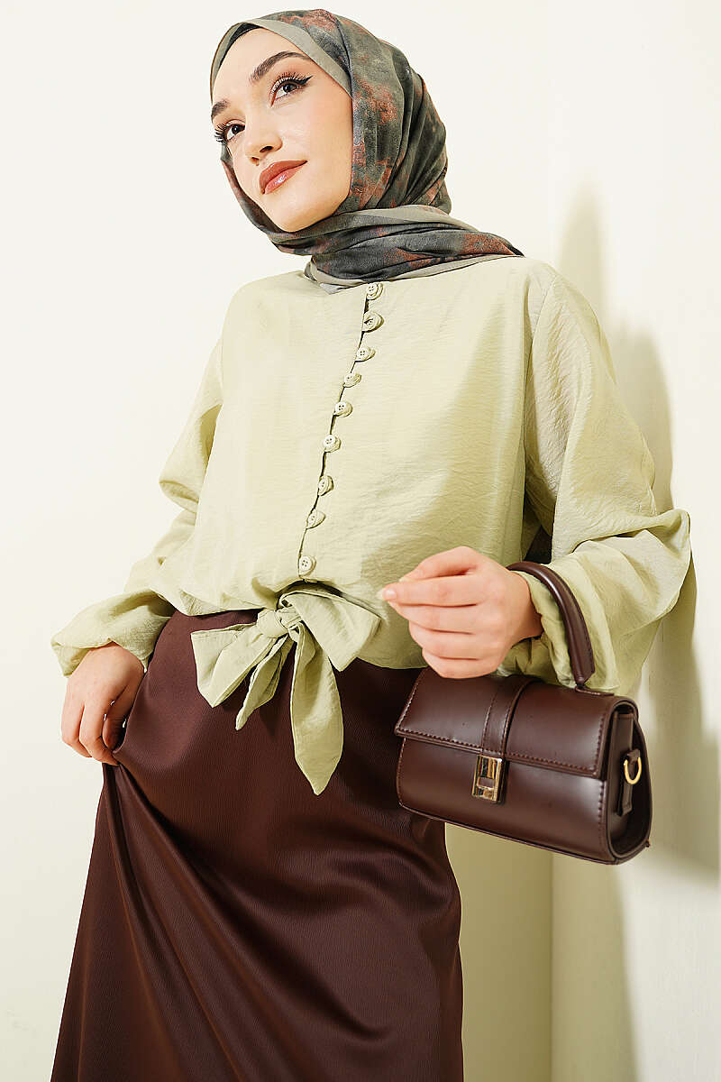 Önü Brit Düğmeli Bağlamalı Kısa Gömlek Çağla Yeşili