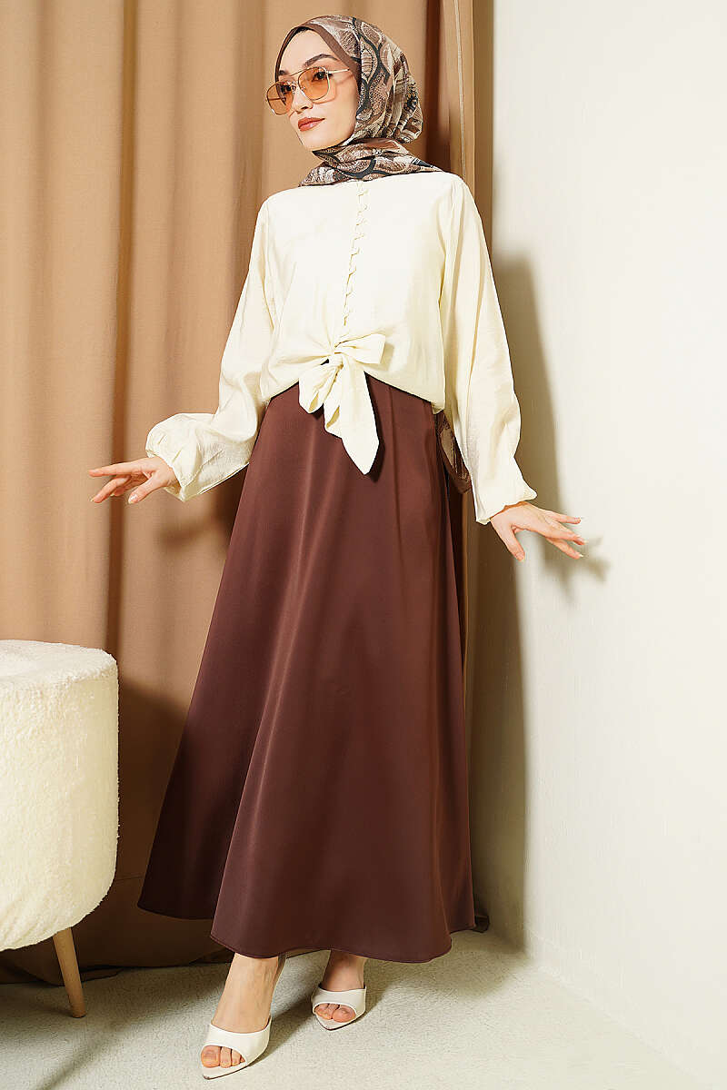 Oversize Tensel Gömlek Kahve
