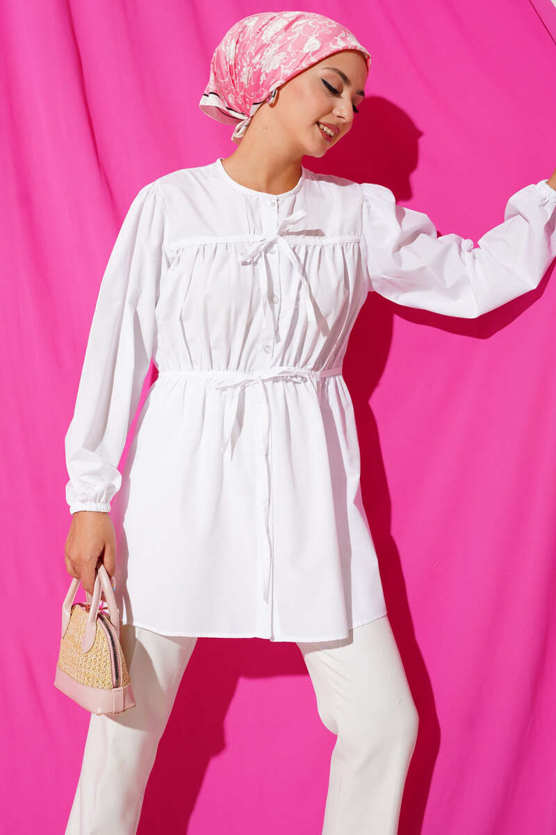 Balıkçı Yaka Uzun Kol Body Beyaz