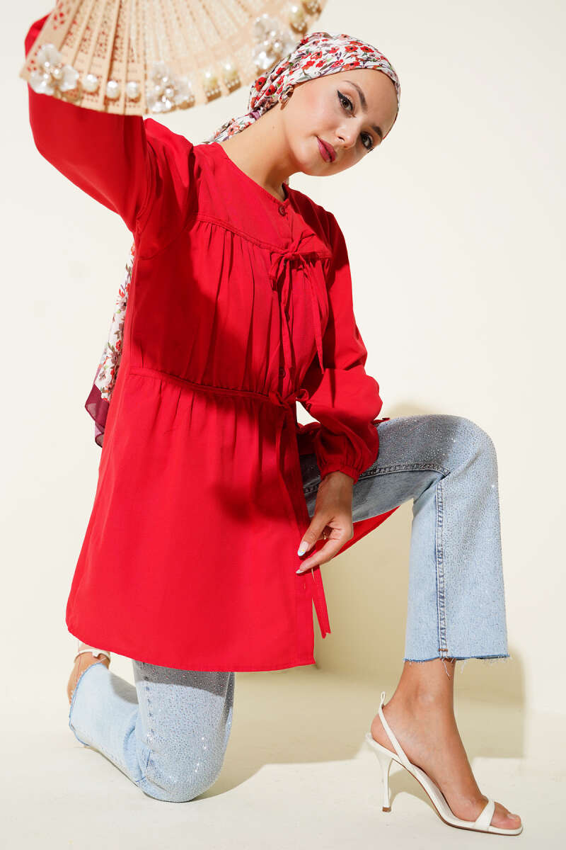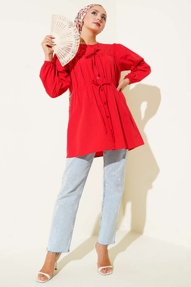 Elegance Baskılı İki İplik Tunik Kırmızı