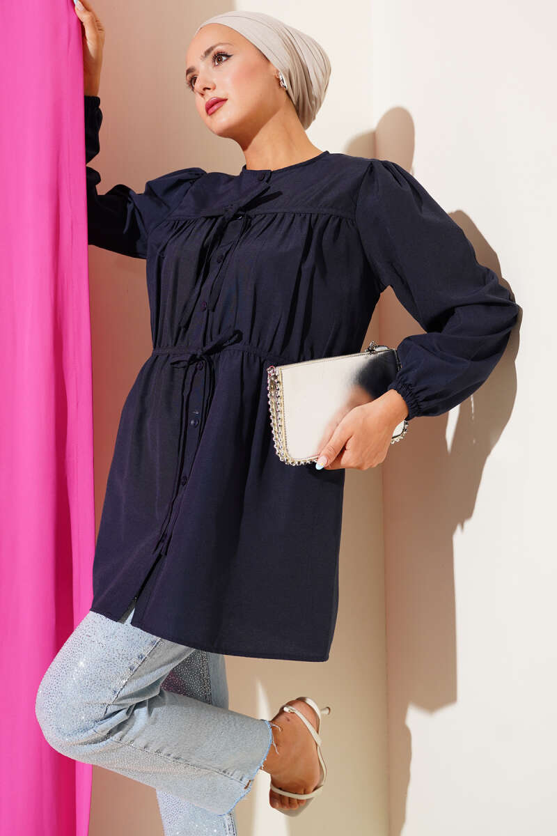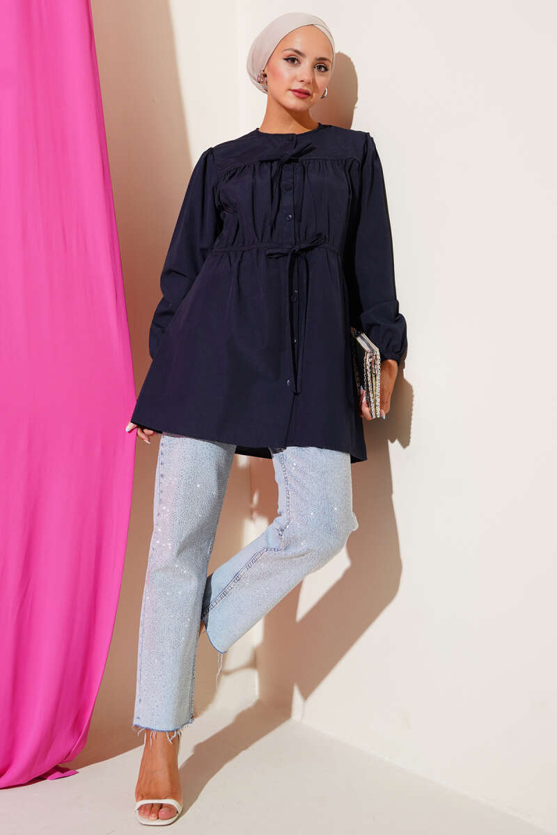 Gömlek Yaka İp Kuşaklı Deri Ceket Siyah
