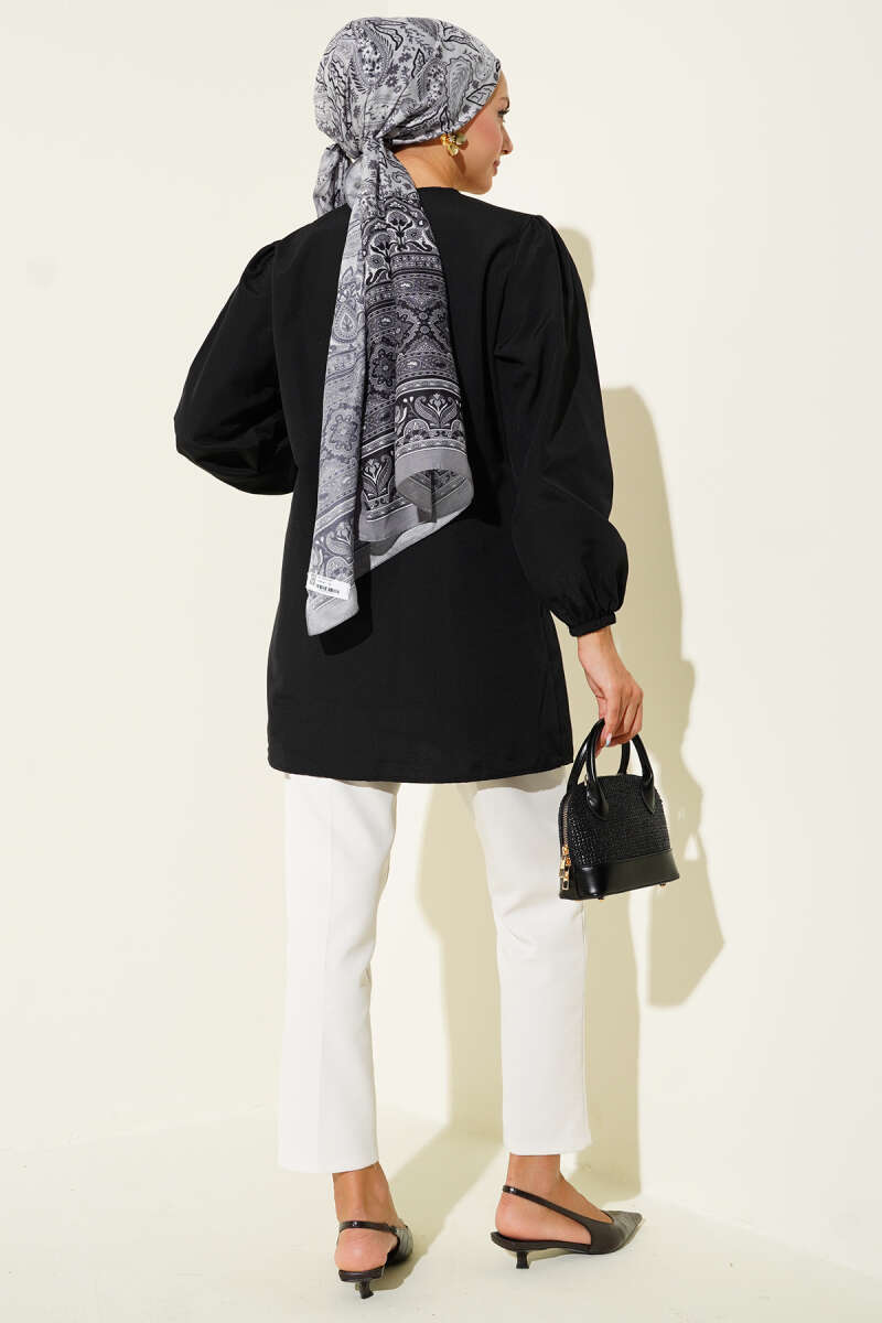 Deniz Yıldızı Düğmeli Triko Hırka Siyah
