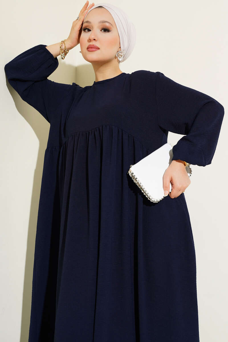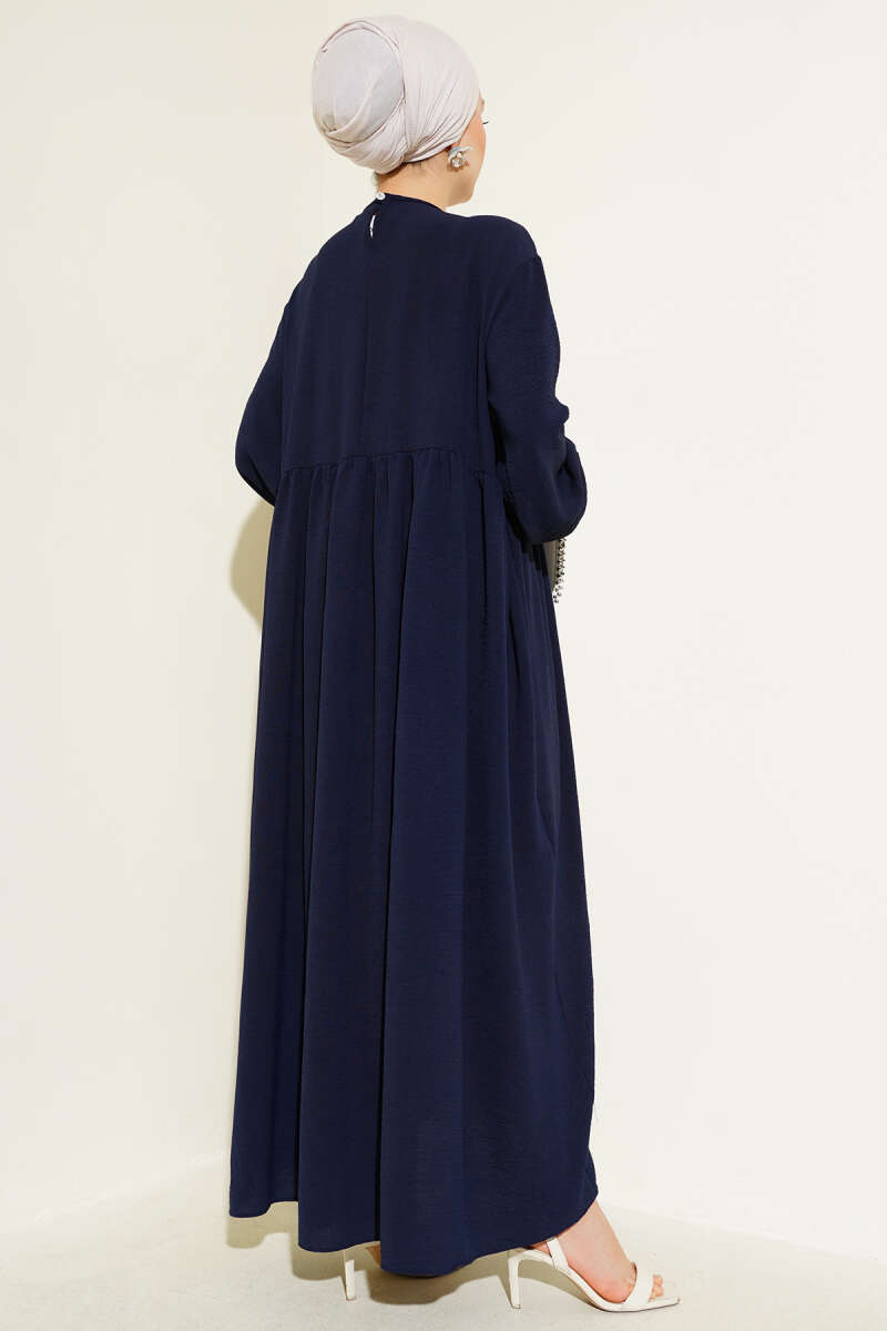 Gömlek Yaka Düğmeli Triko Elbise Lacivert