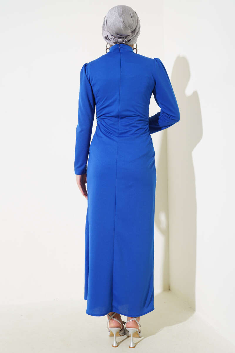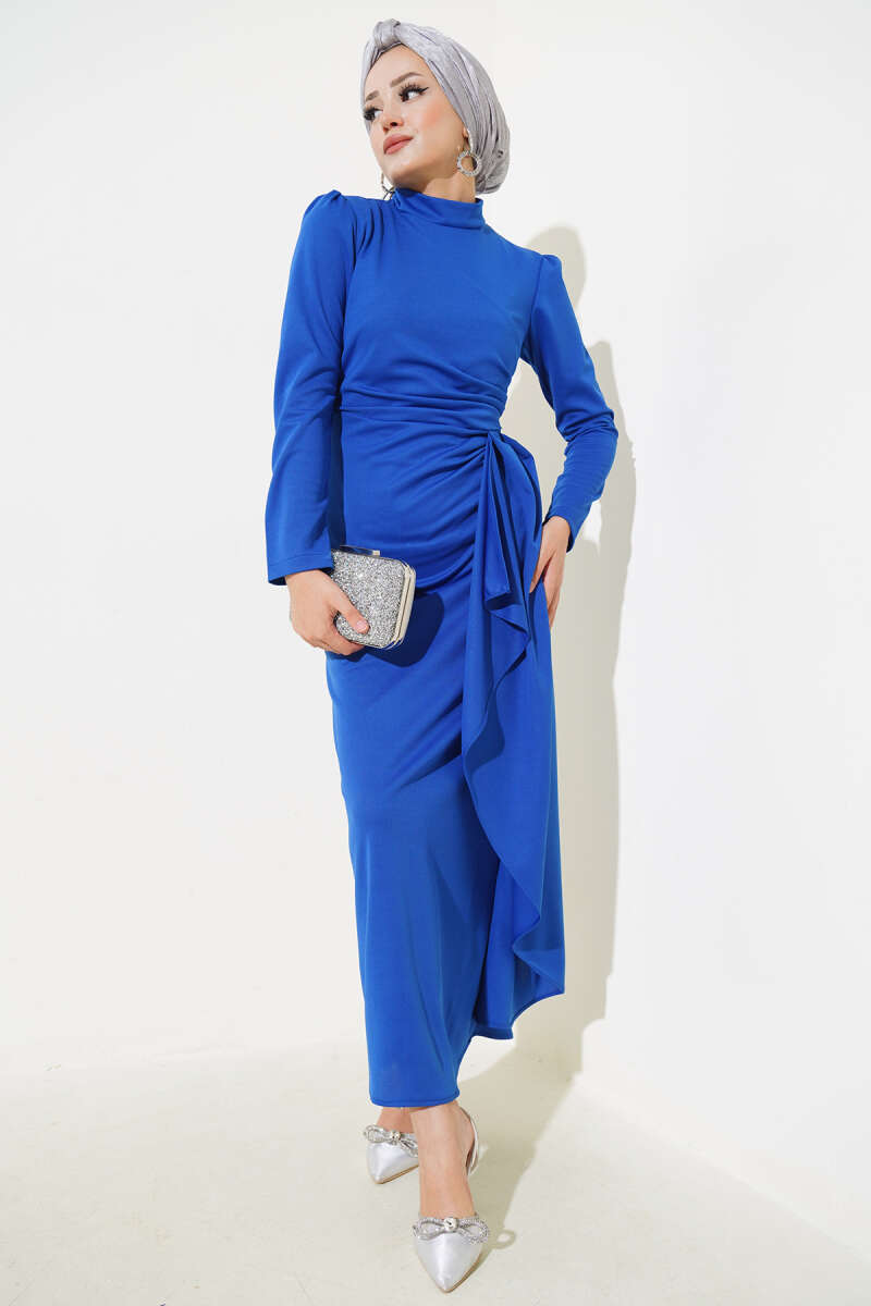 Bilek Bağlamalı Kuşaklı Abiye Elbise Lacivert