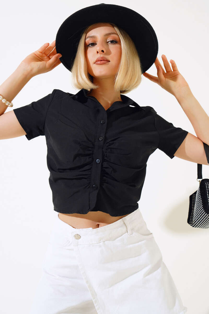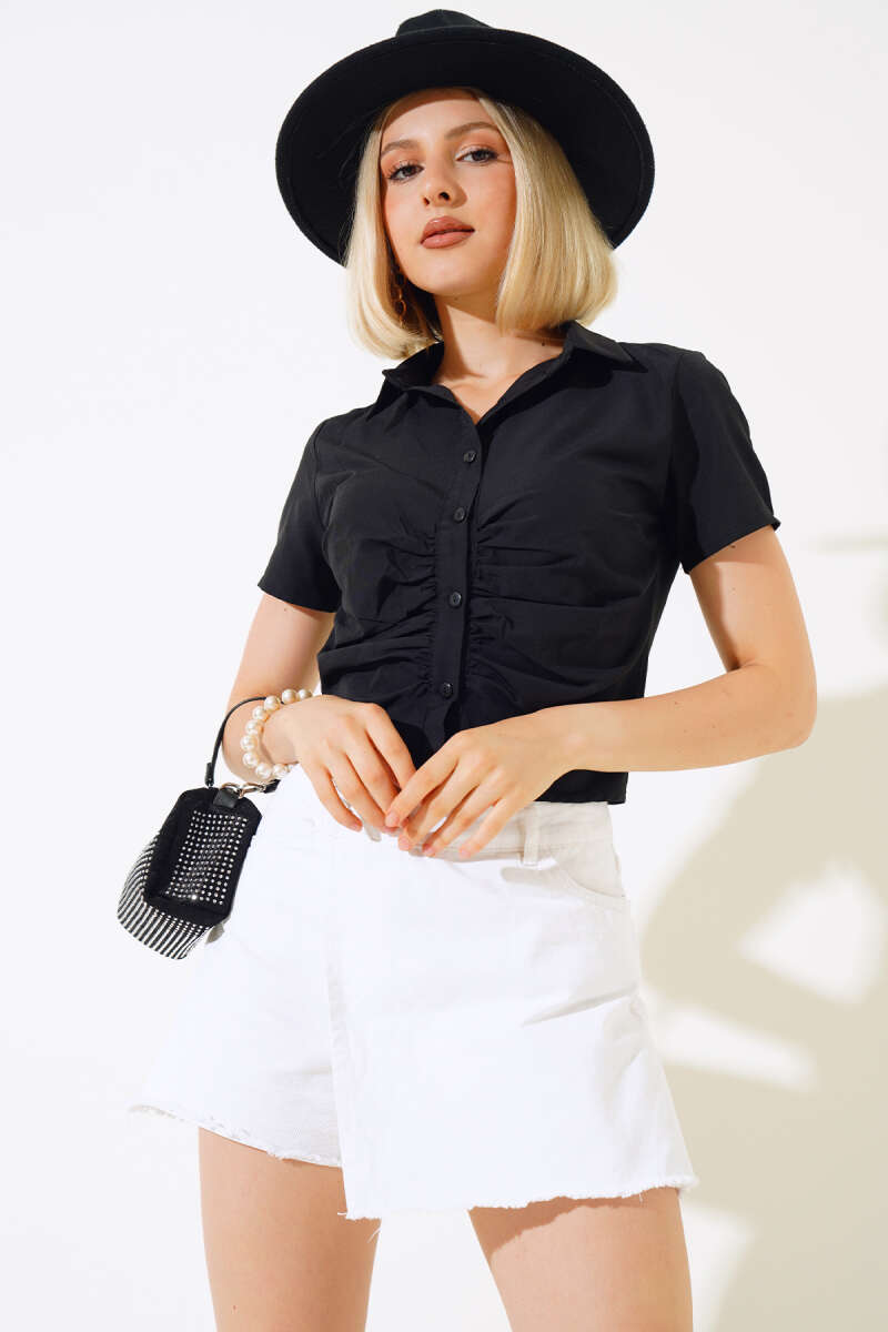 Bel Lastikli Geniş Paça Scuba Pantolon Siyah