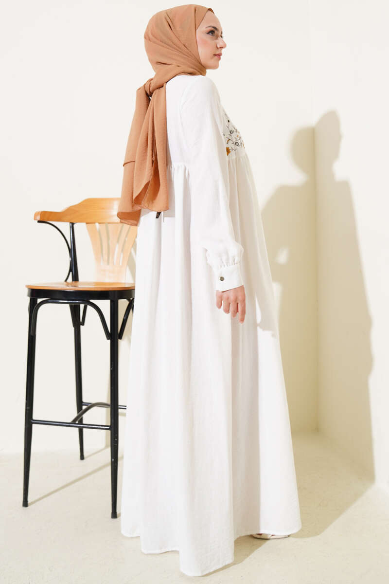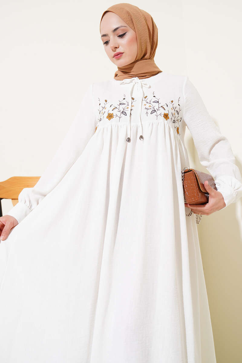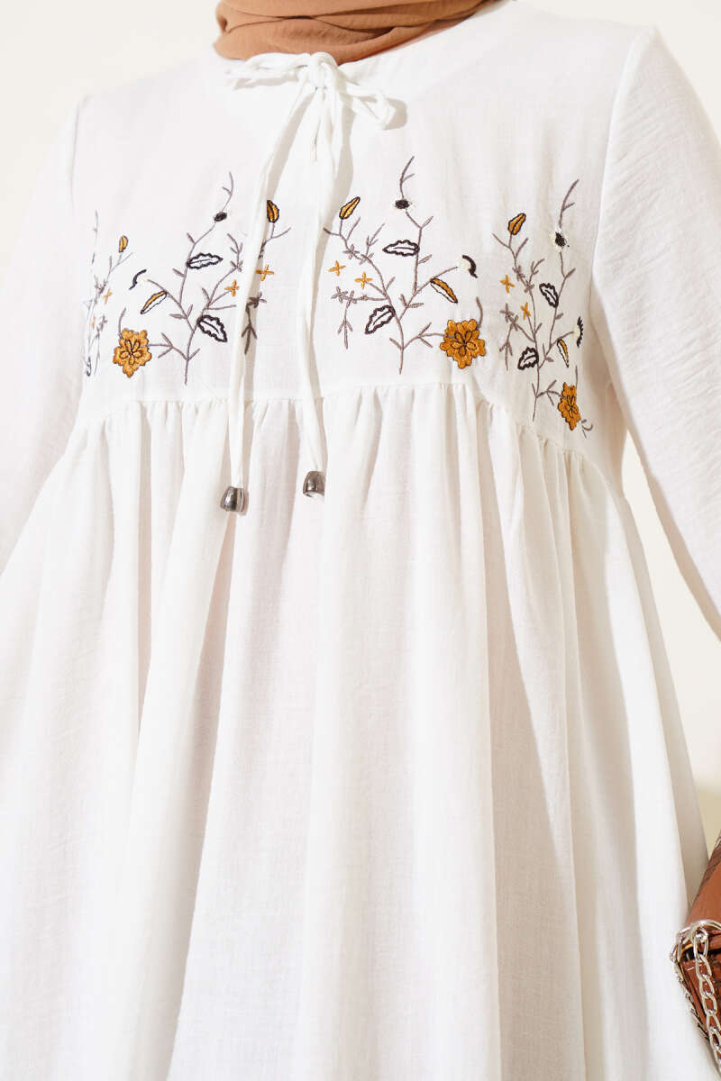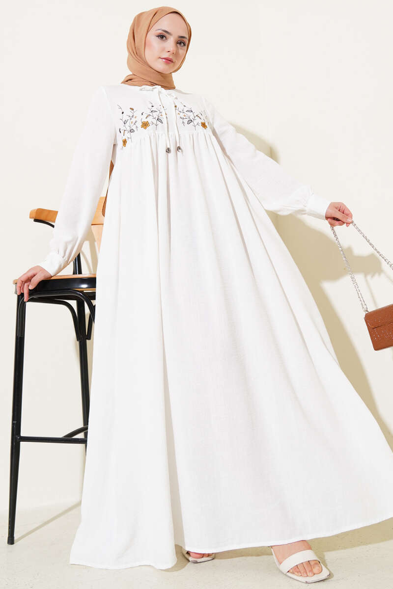 İp Kuşaklı Ajurlu Triko Elbise Ekru