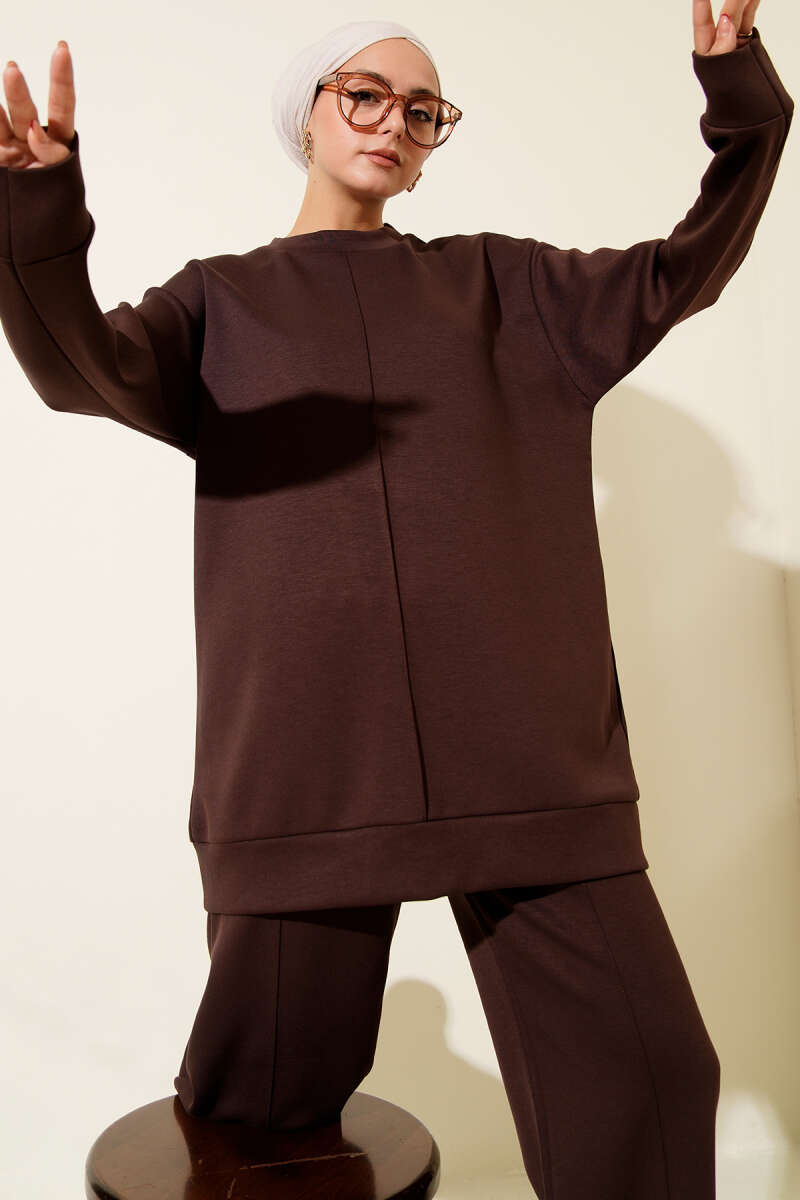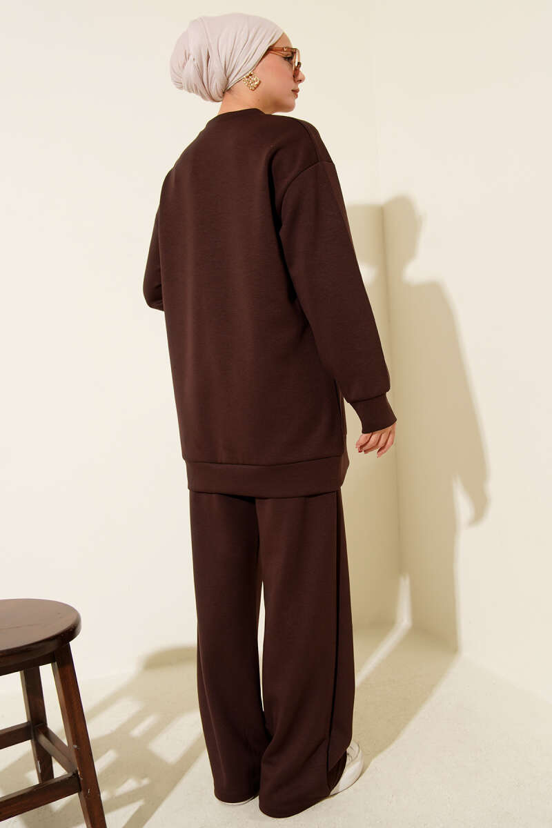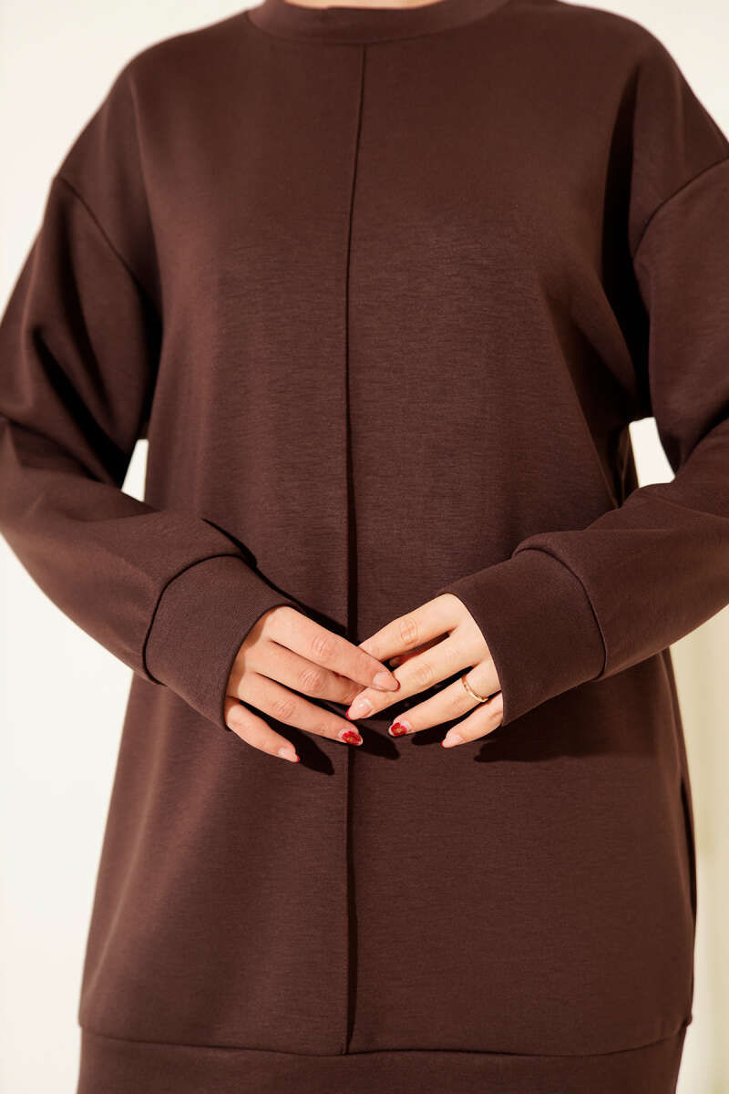 Fitilli Düz Pike Elbise Kahve
