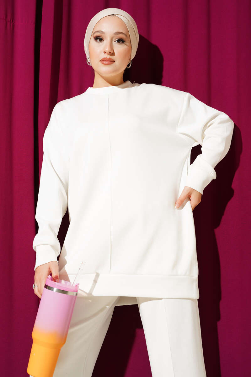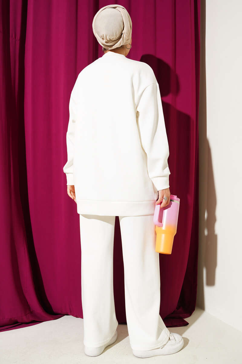Kabartma Desen Triko Jile Elbise Takım Bej