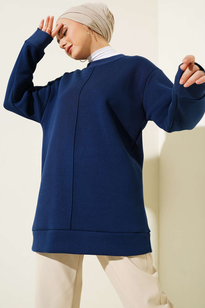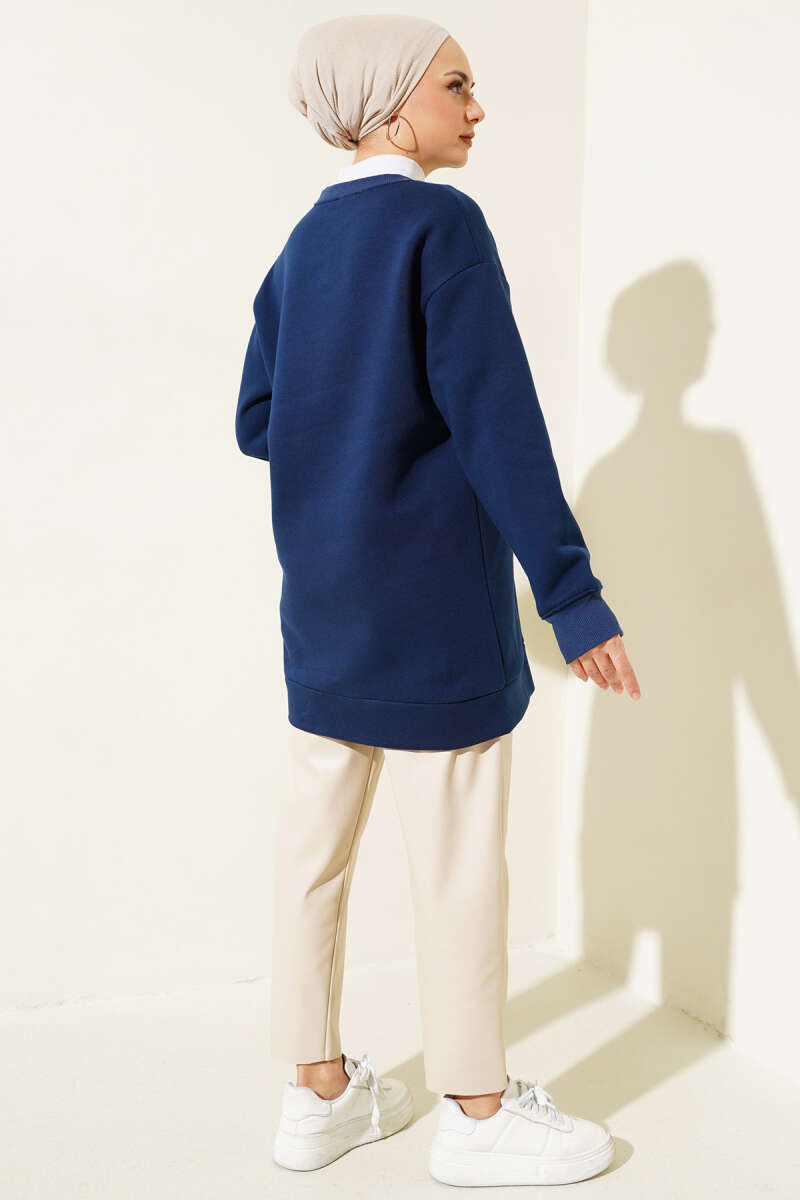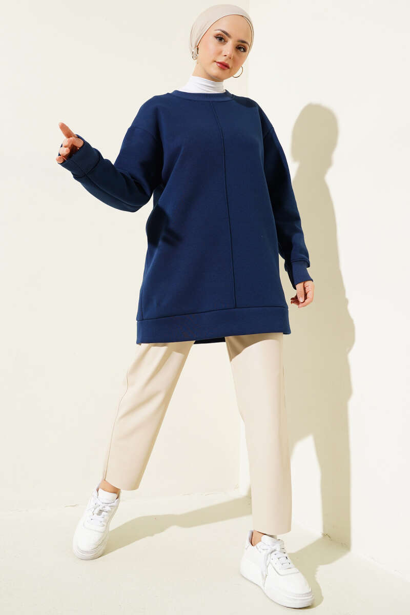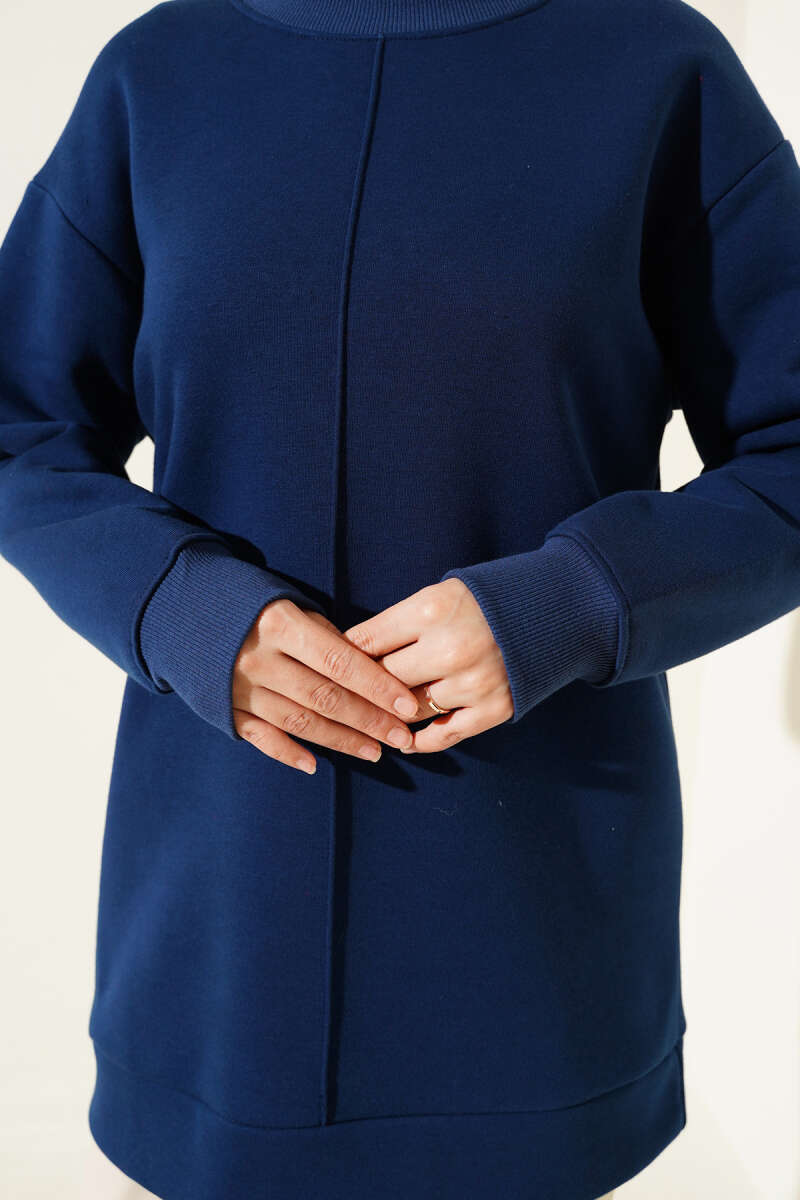 Önü Çımalı Üç İplik Tunik Lacivert