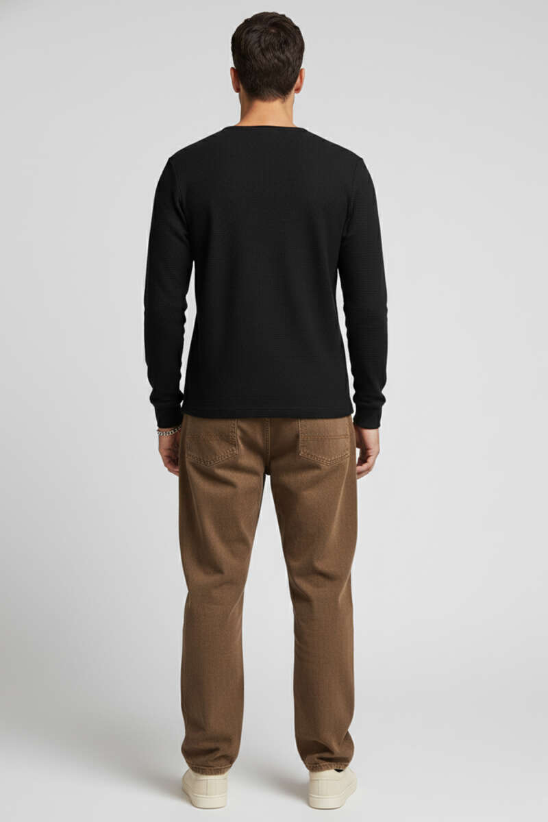 Önü Çıtçıtlı Waffle Sweatshirt Siyah